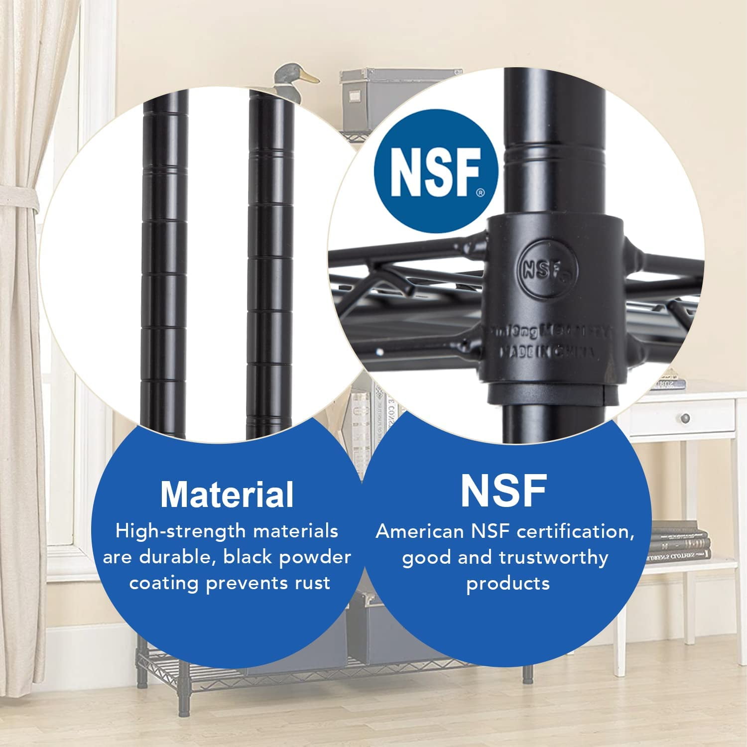 ✔【EASY TO ASSEMBLE】: The storage shelves is easy to assemble, all parts packaged for idiots.This wire shelf structure is very simple ,No tools required to assemble it.The wire shelving unit is simple to assemble,You only need to spend 10 min to install it.