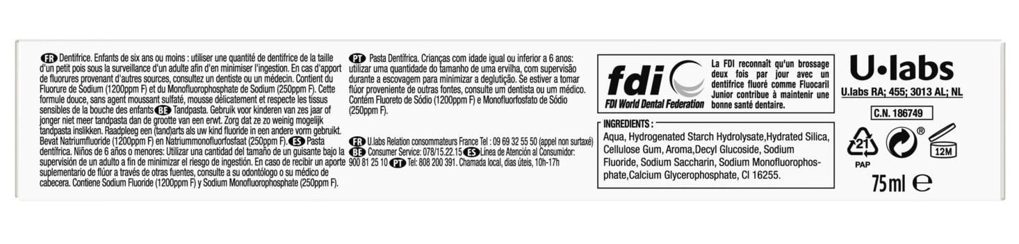 Fluocaril Junior Toothpaste 6-12 Years Old 2 x 75ml – Fruit Flavor Prevents Cavities and Strengthens Tooth Enamel – Fluocaril is a toothpaste suitable for the first permanent teeth of children aged 6 to 12. It cleans teeth while protecting the tooth enamel. It limits the formation of cavities thanks to its fluoride content. It has also been enhanced with an aroma of red fruits which gives it a pleasant taste. Fluocaril Junior toothpaste is enriched with a fluoride content suitable for children from 6 to 12 years old. This active ingredient intervenes in the remineralization of the enamel to strengthen it to fight against the acid attacks that attack your child’s teeth day after day. The formation of cavities is thus prevented and the development of cavities already present is limited. It is accompanied in this task by calcium glycerophosphate which also helps to slow down the appearance of tartar.