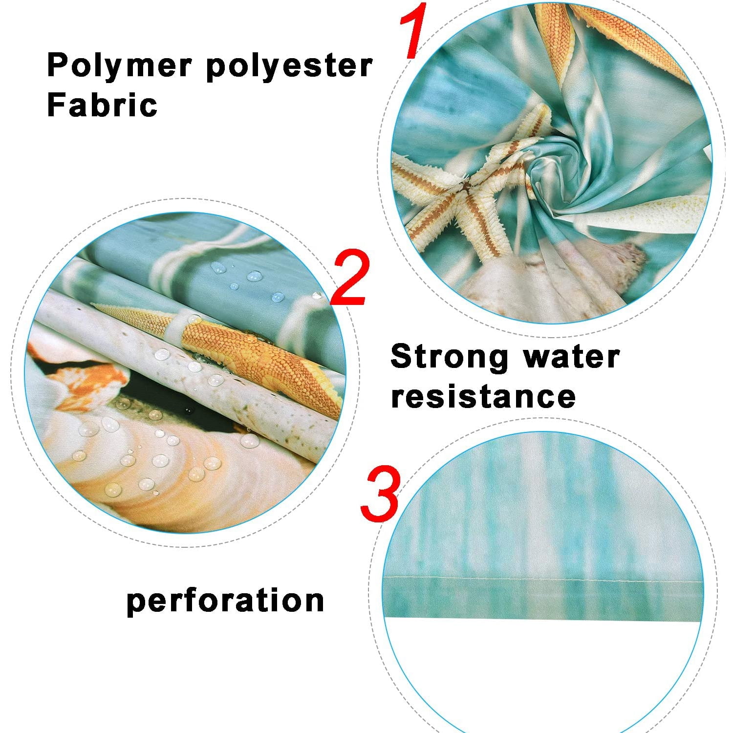 FRAMICS gold seashell starfish conch teal ocean nautical pattern shower curtain set is made of 100% environment-friendly water-repellent polyester fabric, durable, skin-friendly, perfect to avoid spilling water.