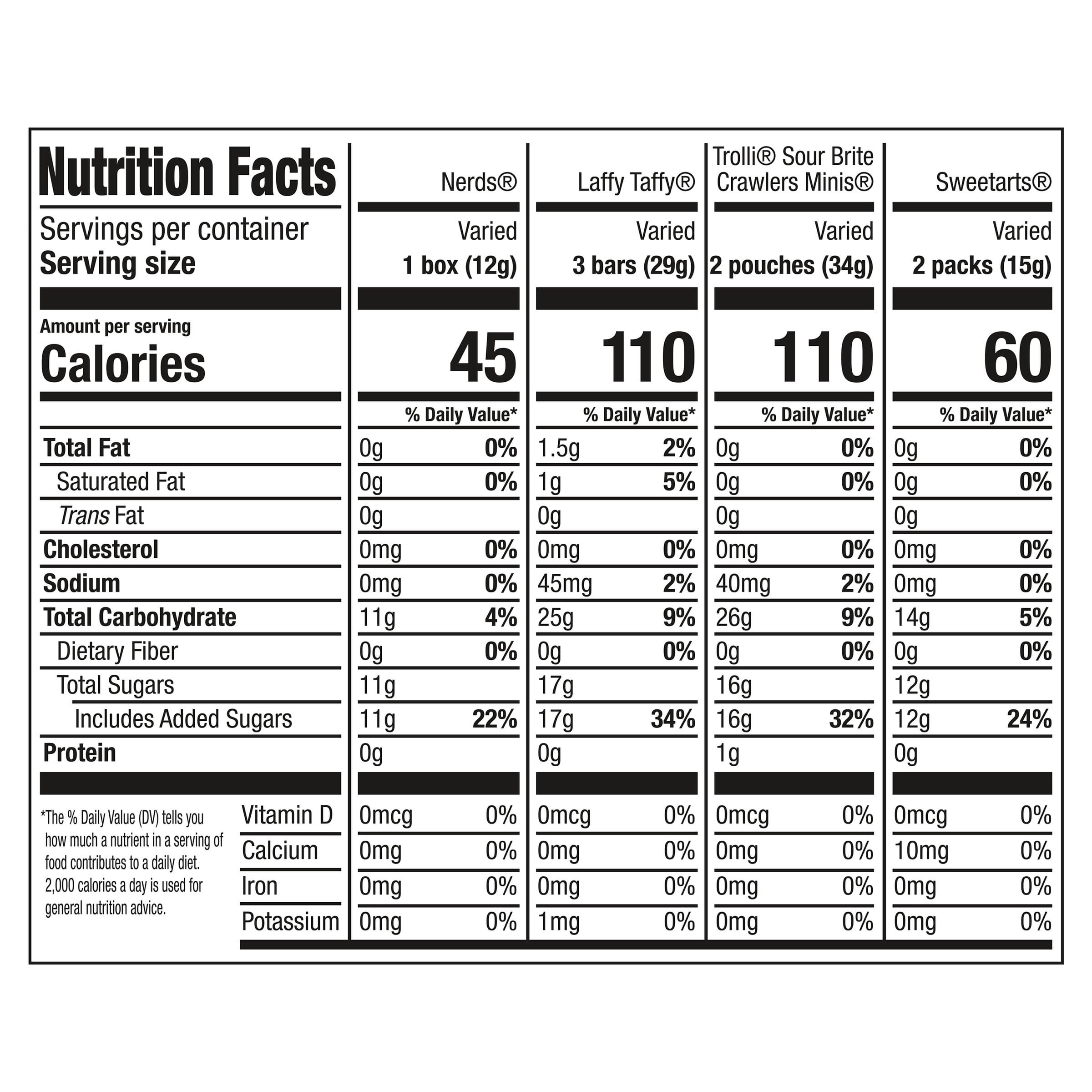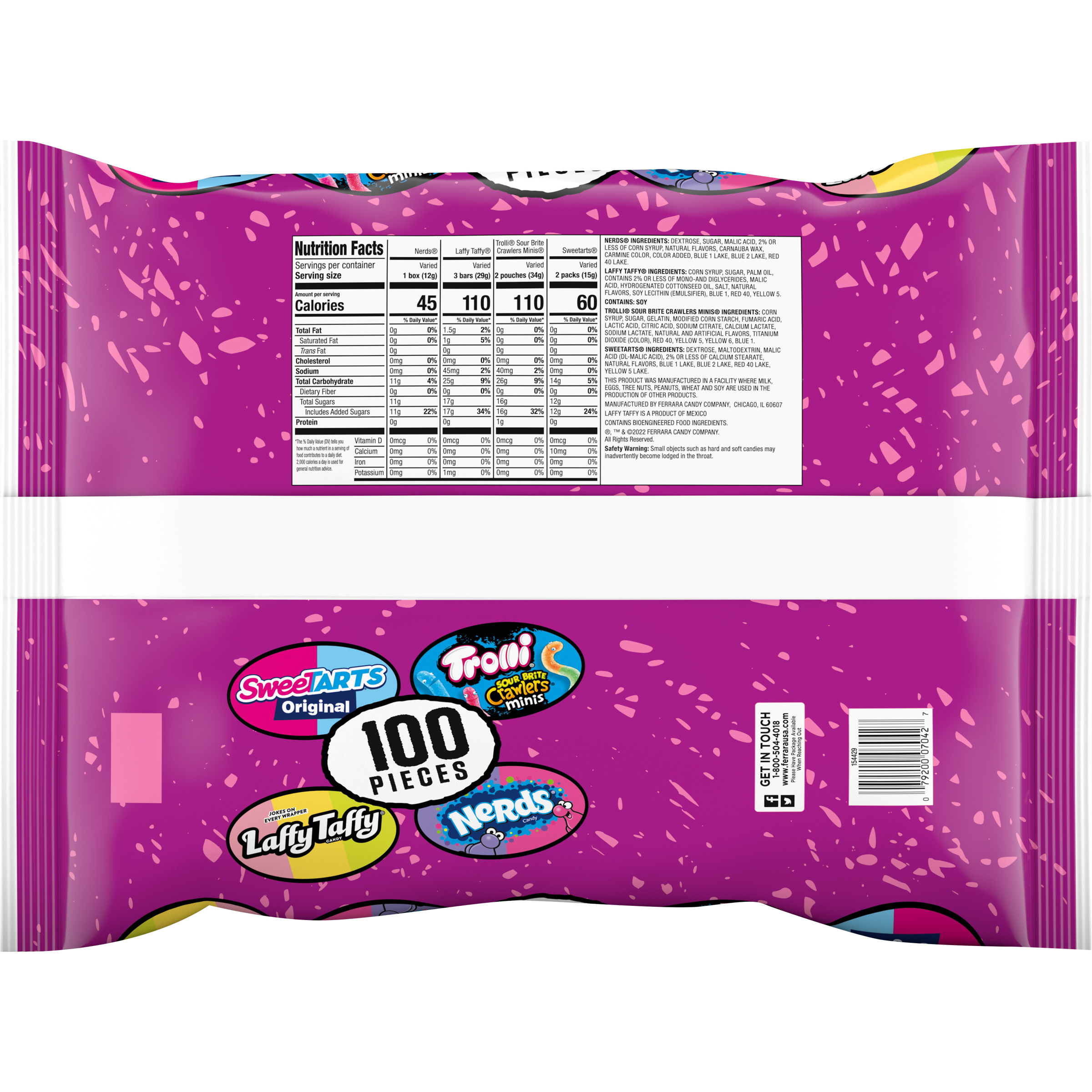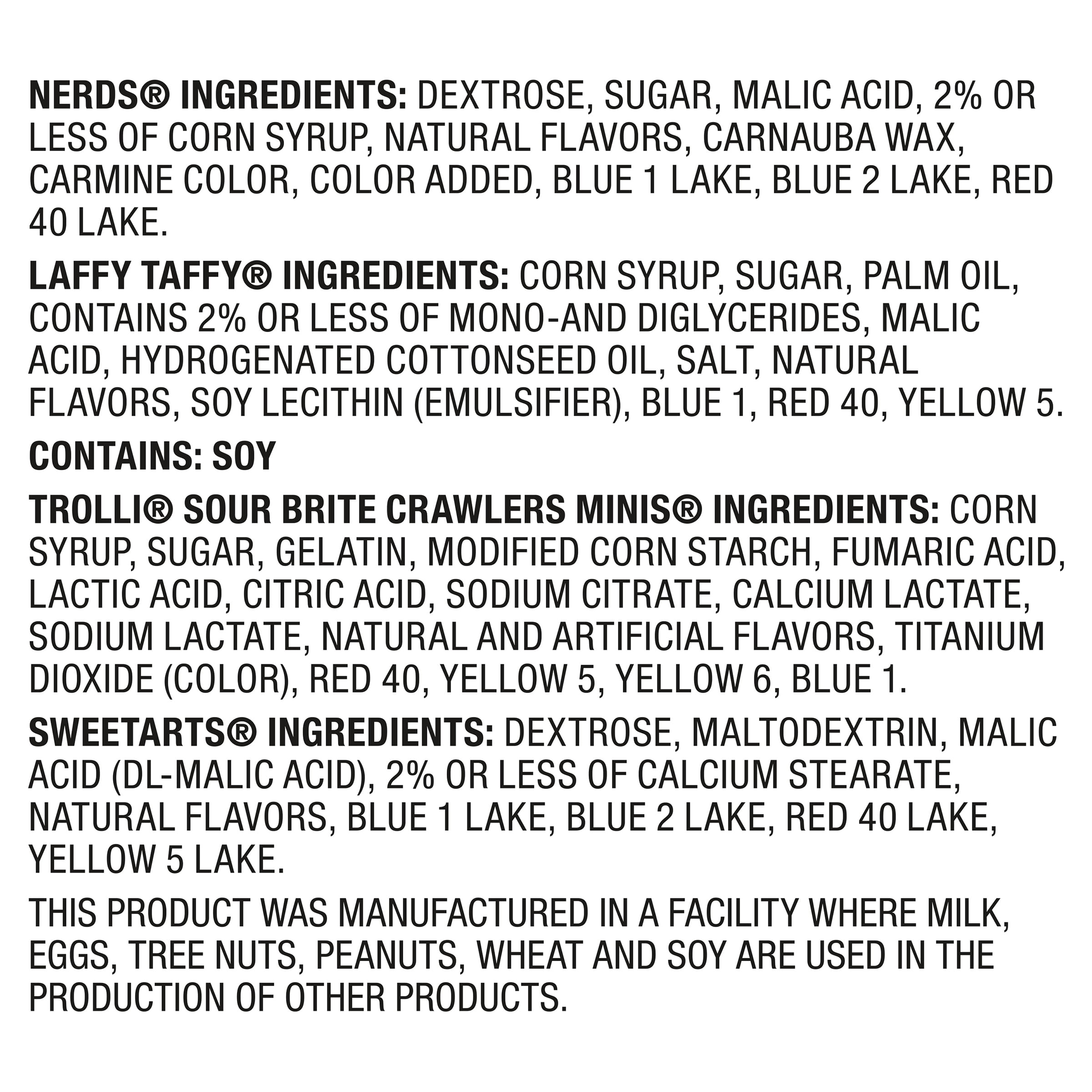 - Assortment includes SweeTARTS Originals, Trolli Sour Brite Crawlers Minis, Laffy Taffy, and NERDS Originals