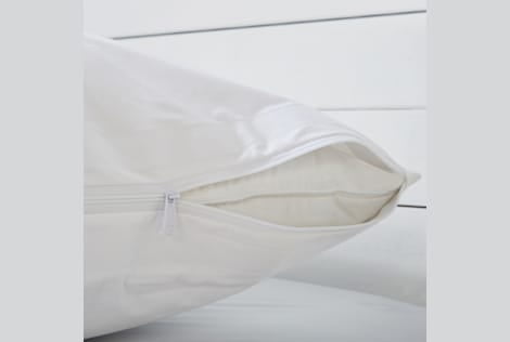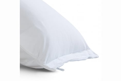 The All-In-One Easy Care Pillow Protectors with Bed Bug Blocker 2-Pack by Fresh Ideas is everything you need to protect and defend against bed bugs, dust mites, and other household allergens. The Easy Care Collection begins with a heavy-duty woven fabric lined with a special, permanent coating. This coating, along with our double-sewn seams, provide extra secure, complete protection while our triple-seal closure system ensures maximum security while sleeping. This unique system features an inner flap, a hook and loop hidden seal, and a nylon zipper to prevent bed bugs and dust mites from entering or escaping. Each set includes two pillow protectors.