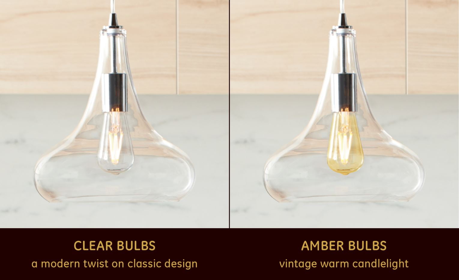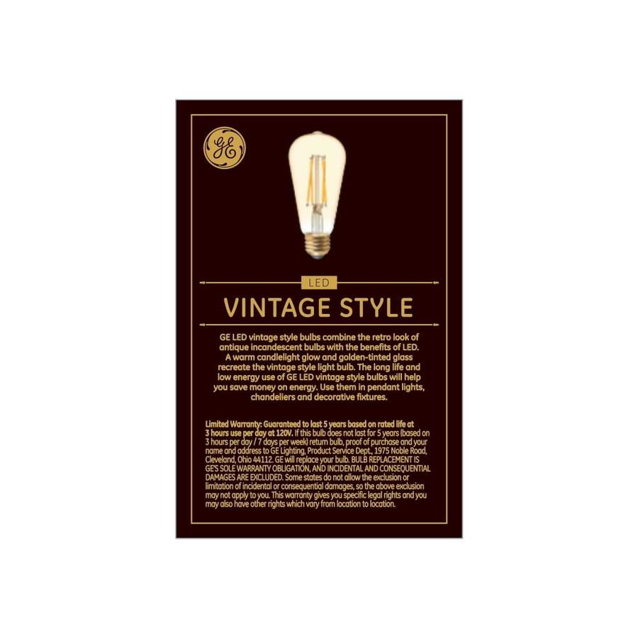 GE Vintage Style 60-Watt Replacement Amber Finish ST19 LED light bulbs combine the retro look of antique incandescent bulbs with the benefits of LED. A warm candlelight glow and golden-tinted amber glass recreate the vintage light bulb. These decorative bulbs are great for frequently used fixtures—GE Vintage Style LED bulbs are rated to last 13 years based on 3 hours per day use and save 89 dollars on energy costs over the bulb’s life versus a 60-Watt vintage incandescent bulb. They feature instant full brightness and are free of Mercury for easy disposal. Use the Vintage Edison-style ST19 bulb with a medium base in dimmable pendant lights, chandeliers and decorative fixtures, including damp locations.