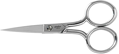 A basic necessity for sewing and needlework enthusiasts, Classic Embroidery Scissors feature a strong frame and slender blades ideal for cutting a single layer of fabric, multiple strands of thread and light needlework yarn. A doubleplated chromeovernickel blade finish is both striking and durable, and a leather sheath protects the blades when not in use.