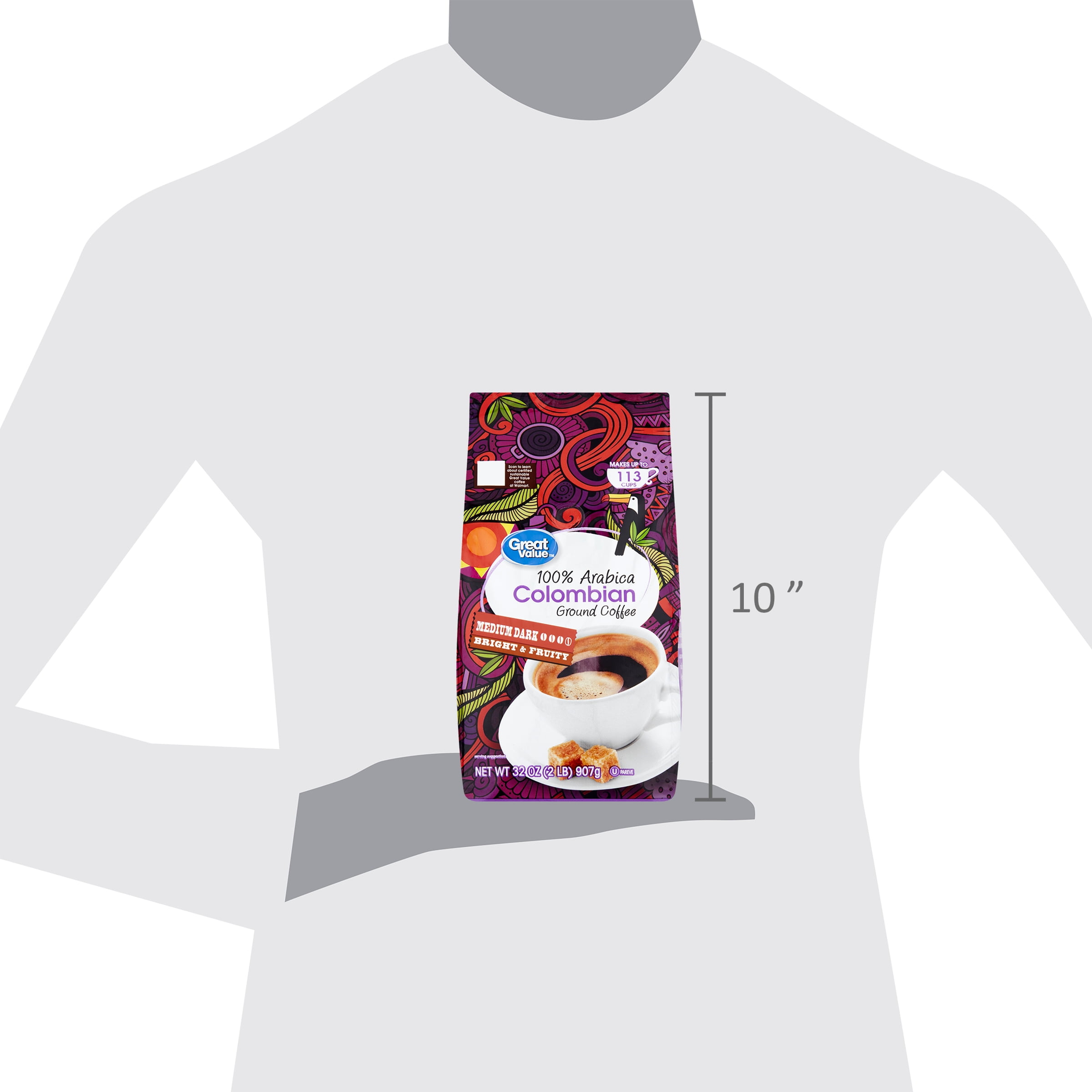 Great Value 100% Arabica Colombian Medium-Dark Roast Ground Coffee, 32 Oz, Bag