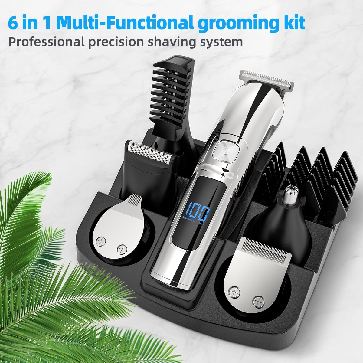- 【16 in 1 Multi-Functional Grooming Kit】Precision unisex shaving system design, 16 attachments for all of your grooming needs and perfect for all hair styles: full size hair Clipper, precision trimmer, nose hair trimmer, beard trimmer, and body hair clippers. The mens grooming kit is equipped with 4 attachment combs (3mm/ 6mm/ 9mm/ 12mm) and 1 adjustable combs, 1 storage stand(keeps everything in one spot, clean and simple to use), 1 styling scissors, 1 cape, 1 clean brush.