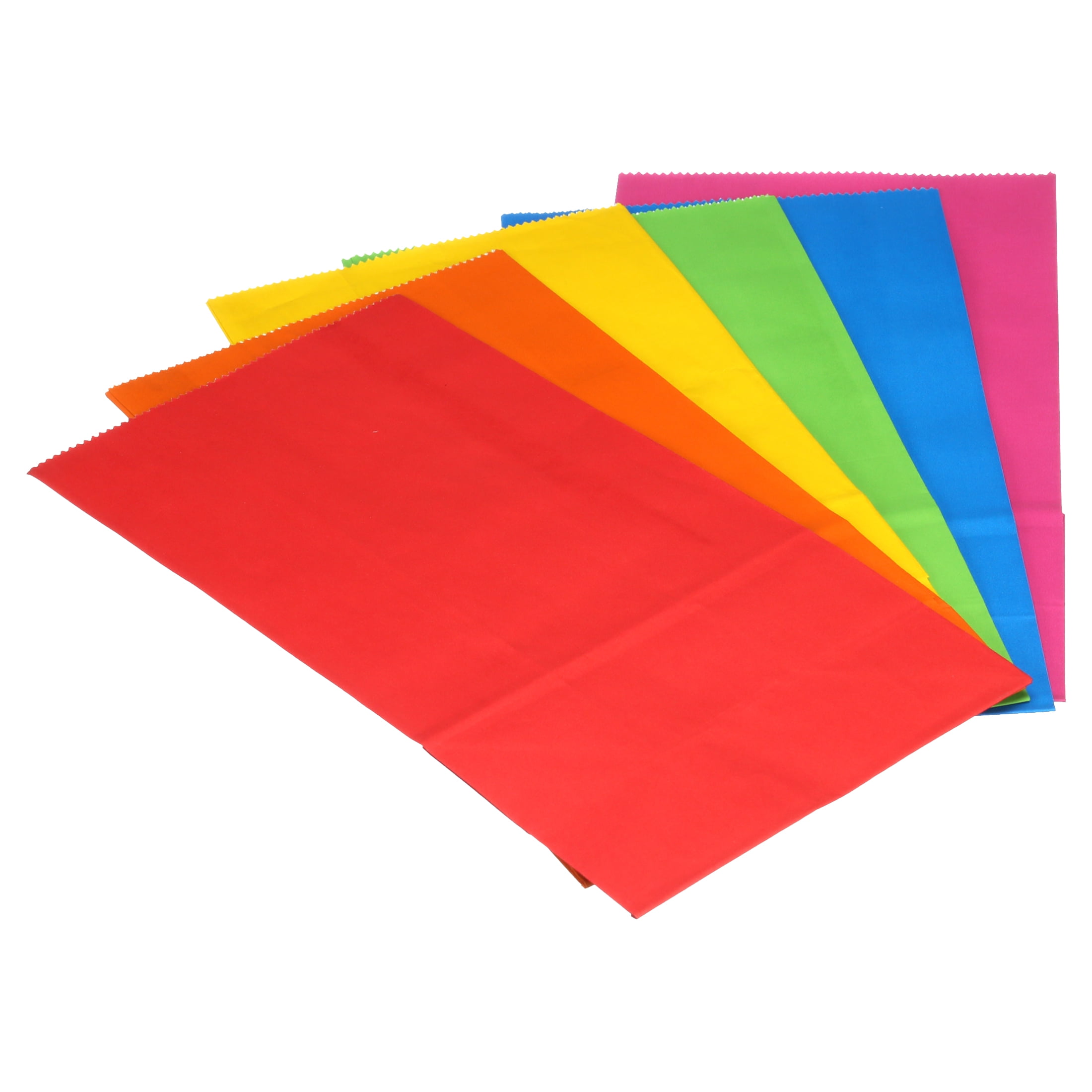 Hallmark This 30-count set of paper favor bags contains 5 of each solid color (Blue, Red, Green, Yellow, Orange, Pink). Perfect for holding wrapped candies and snacks, small toys, or wedding and party favors. Makes packing a sack lunch for work, school or field trips fun and easy. Each treat bag measures 5.25" x 10.38" x 3.38". The Hallmark brand is widely recognized as the very best for greeting cards, gift wrap, and more. For more than 100 years, Hallmark has been helping its customers make everyday moments more beautiful and celebrations more joyful.