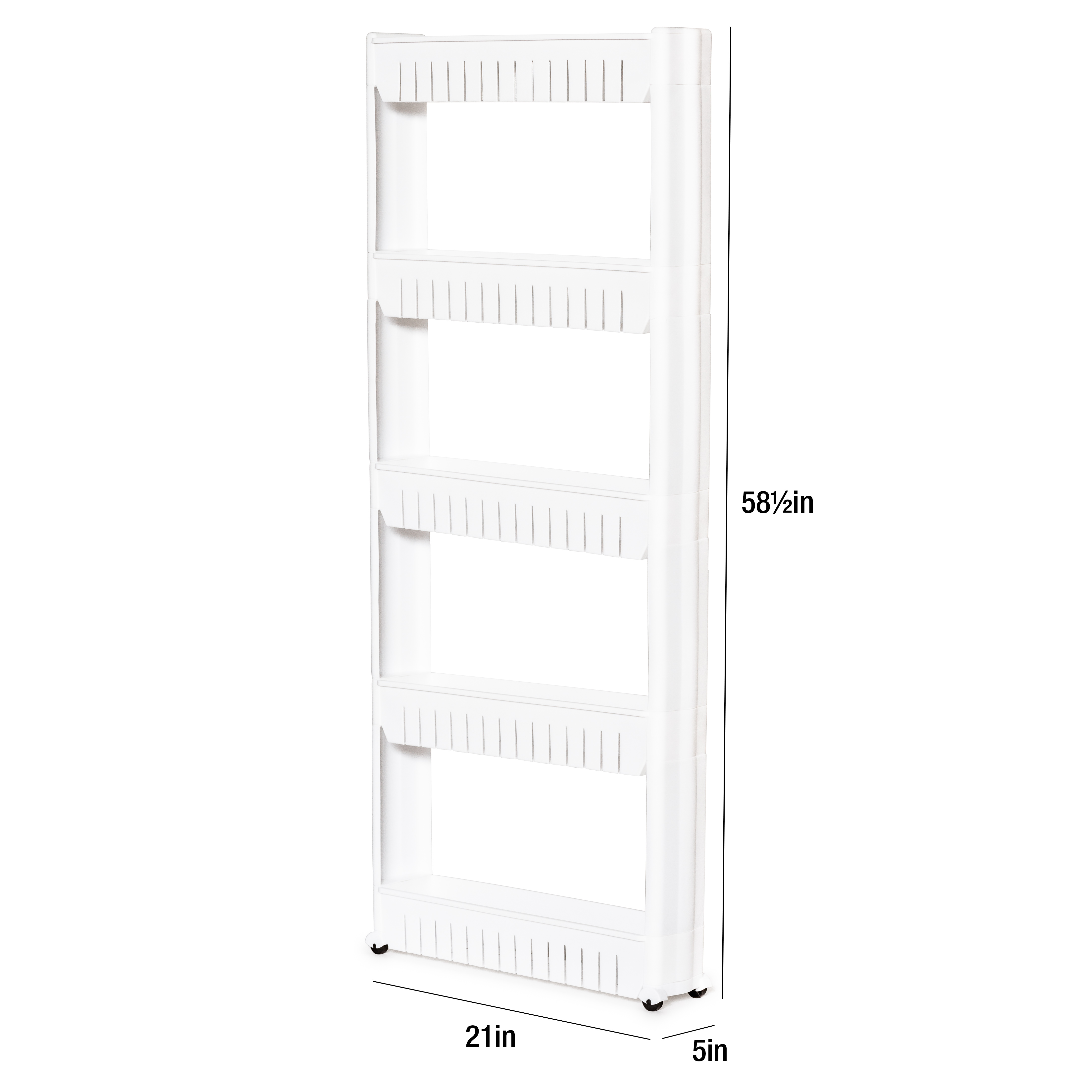 Four roomy bins with draining bottoms will hold all the major items like shampoos, bottles of conditioner and more. The levels will even adjust for tall bottles, and you can remove any or all of the bins and slotted soap dish if you want. Made of plastic. Two convenient hooks. 22 x 15 x 5 inches.