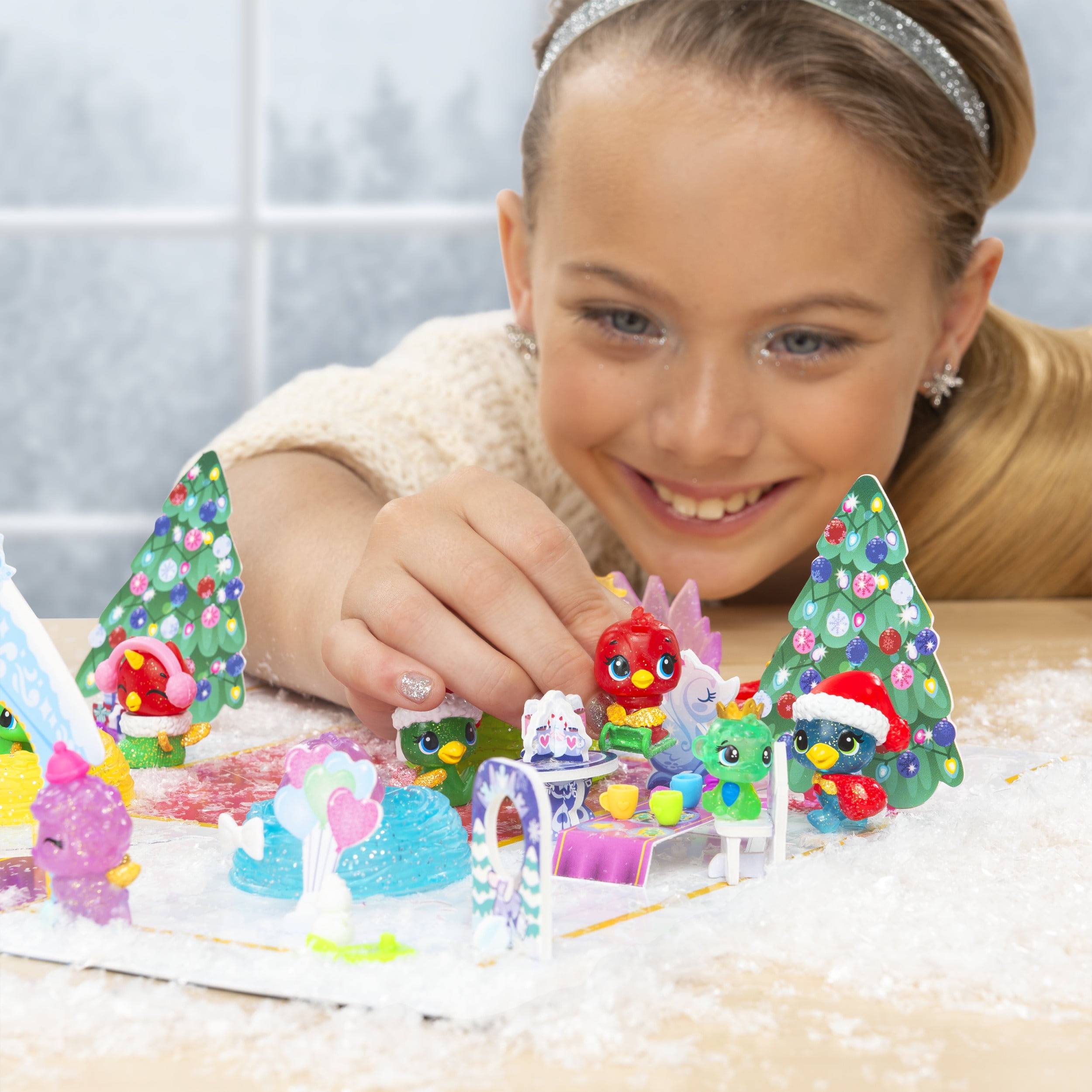 - 50+ SUPRISES TO DISCOVER: Open up a tiny door each day to discover paper craft decorations, small presents, stickers and accessories for your Hatchimals! Add them to your winter scene and create a magical wonderland!