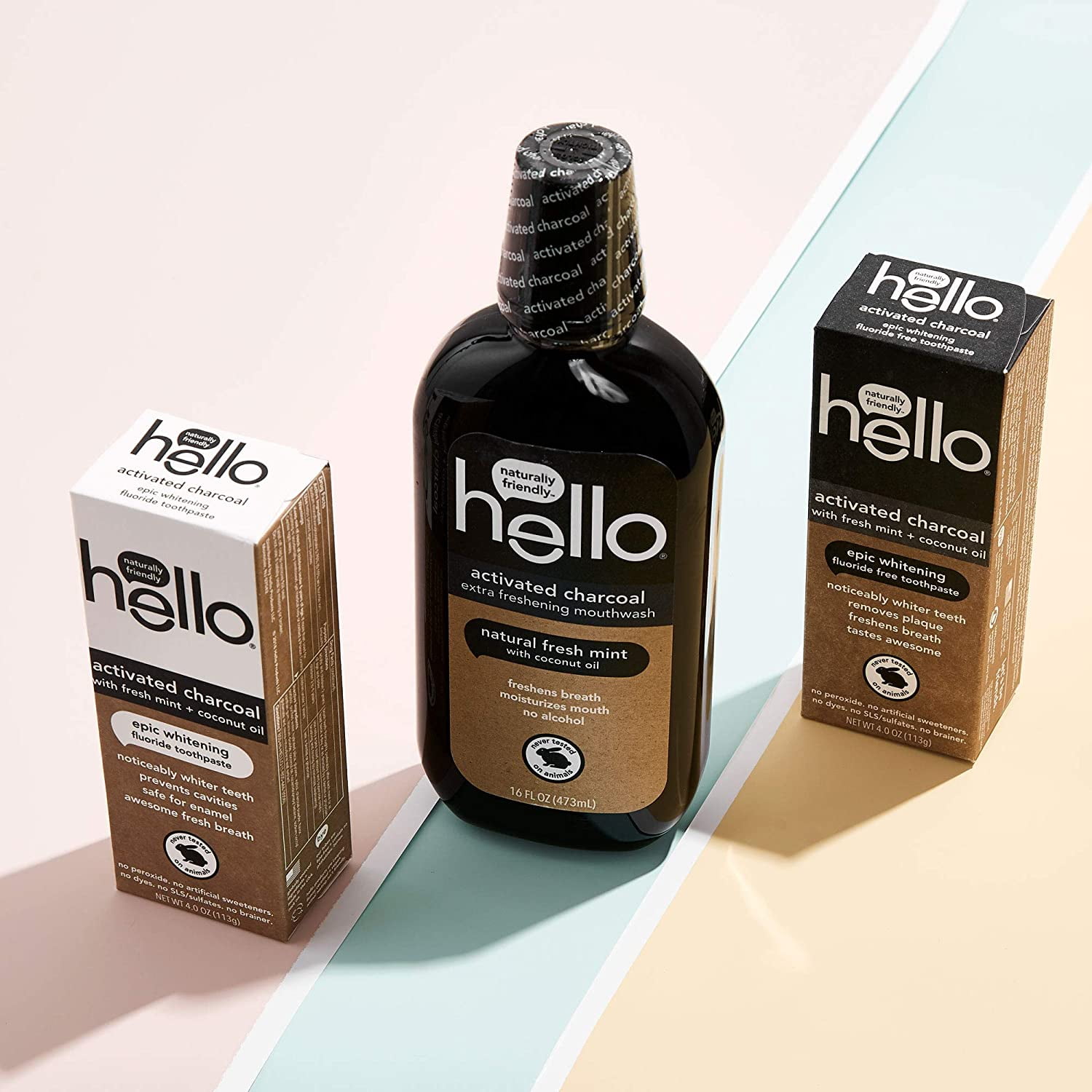 Hello Oral Care Activated Charcoal Extra Freshening Fluoride Free and Alcohol Free Mouthwash with Natural Fresh Mint and Coconut Oil, 3 Count