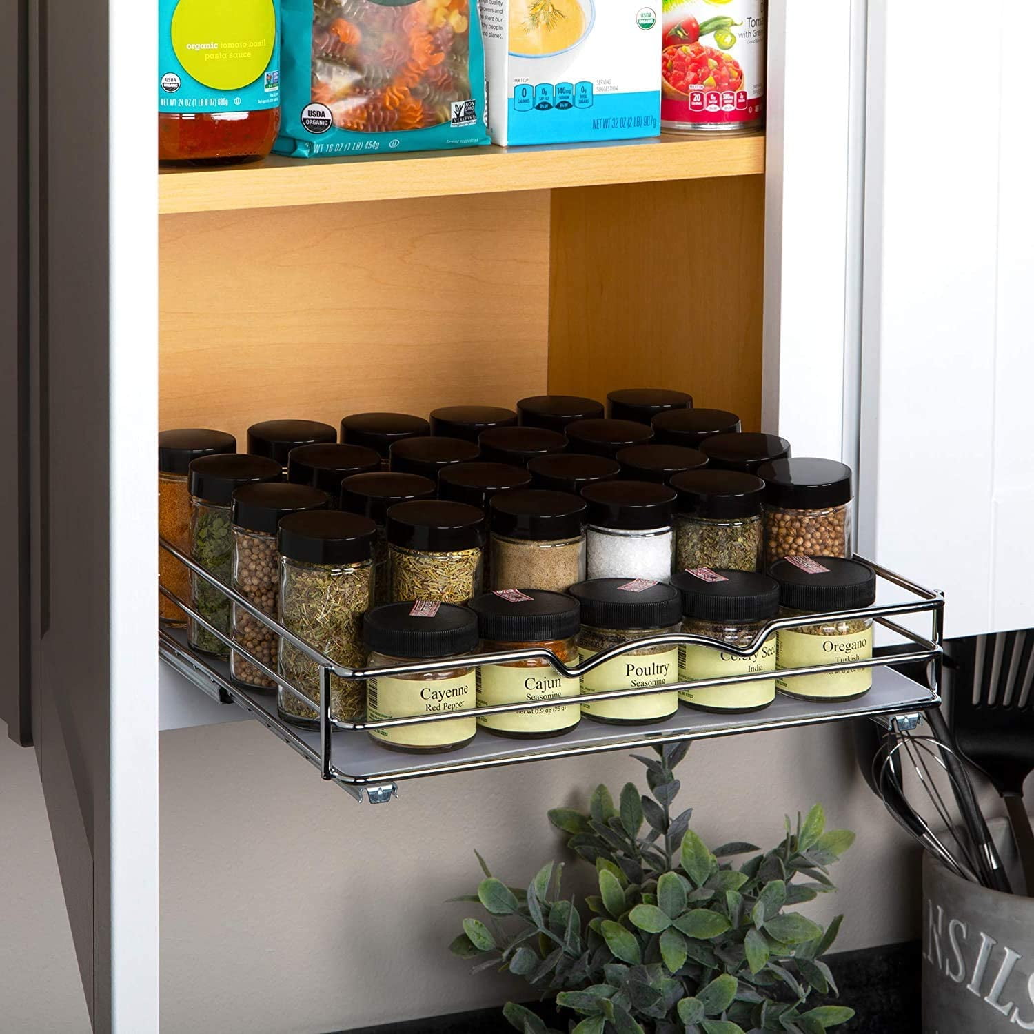 HEAVY DUTY SPICE RACK ORGANIZER FOR CABINETS: If you have limited space in your kitchen to store your spices or are tired of not being able to find anything in a mess of jars and bottles, Than this slide out spices organizer is the perfect solution for you to declutter your spice rack and finally organize your kitchen cabinets PERFECT FOR NARROW CABINETS: Measuring 4 inches Wide this spice rack is great for utilizing tight spaces and narrow cabinets. Easily find all your spices in your cabinet without having to empty out half the contents. Accommodates various different size spices including both round and square sized containers. Great for larger and taller spices, sauces, or any other bottles. SIMPLE! EASY TO INSTALL. HARDWARE INCLUDED: Our Slide out cabinet spice organizer dimensions measure 12 -3/8 "Wide x 10 -3/8"Depth x 2 -1/8” Height” Height and includes easy to follow step by step instructions along with all of the hardware necessary for easy installation. Installs with just a few simple screws so you will get more spices into your cabinets now than ever before PRACTICAL SOLUTIONS YOU’LL LOVE: At HOLDN’ STORAGE, our products aim to create home storage and organizing solutions that make life easier for you including this spice rack organizer for your cabinets. PLUS, if for whatever reason that you are less than satisfied, we offer a 100% satisfaction guarantee. We are here for you and happy to help! It’s that simple