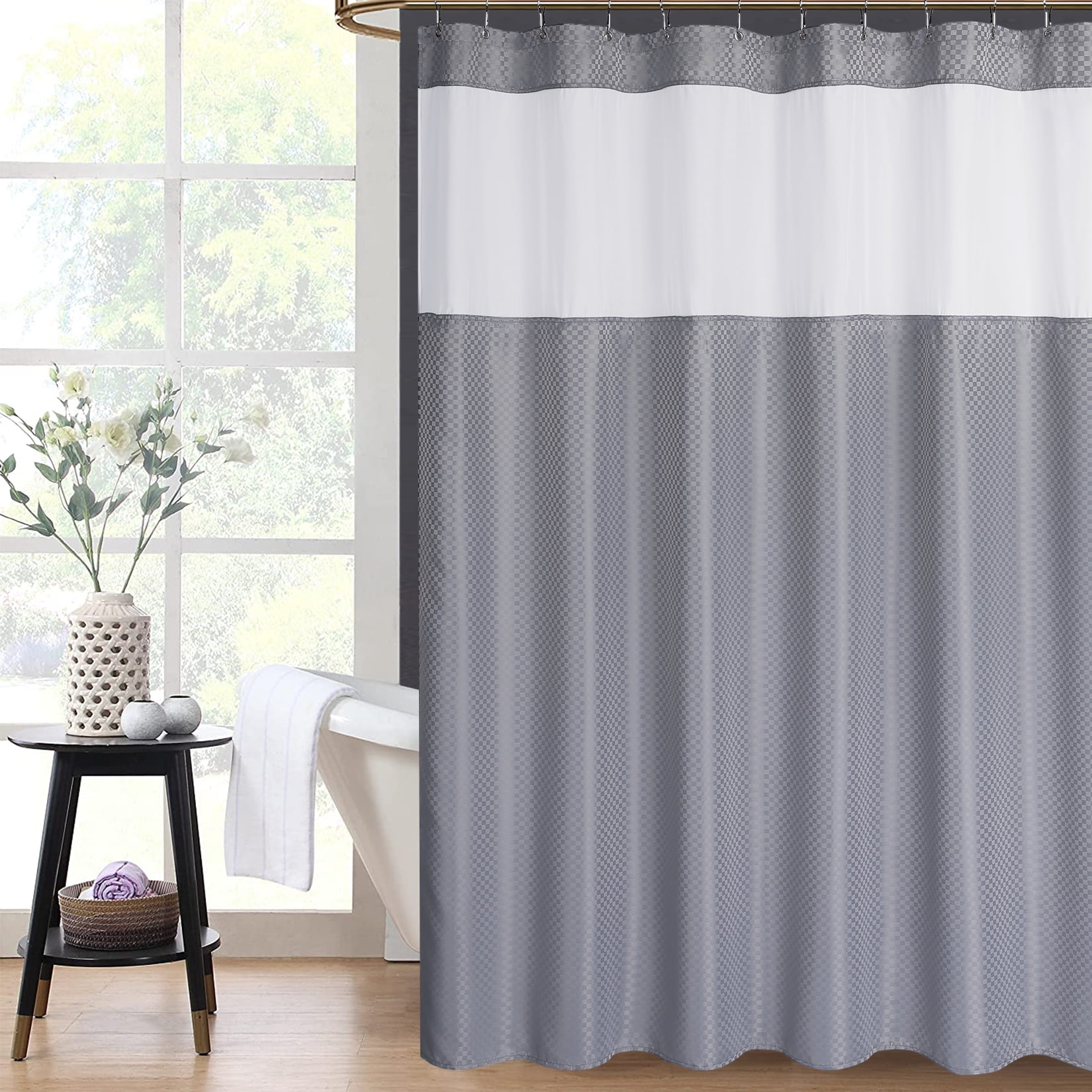 - PREMIUM QUALITY: Our shower curtain is made of heavy-weight woven fabric construction with classic plain square texture, soft hand feel, durable and thick material. A luxury and spa-like feel is delivered when showering or bathing.
