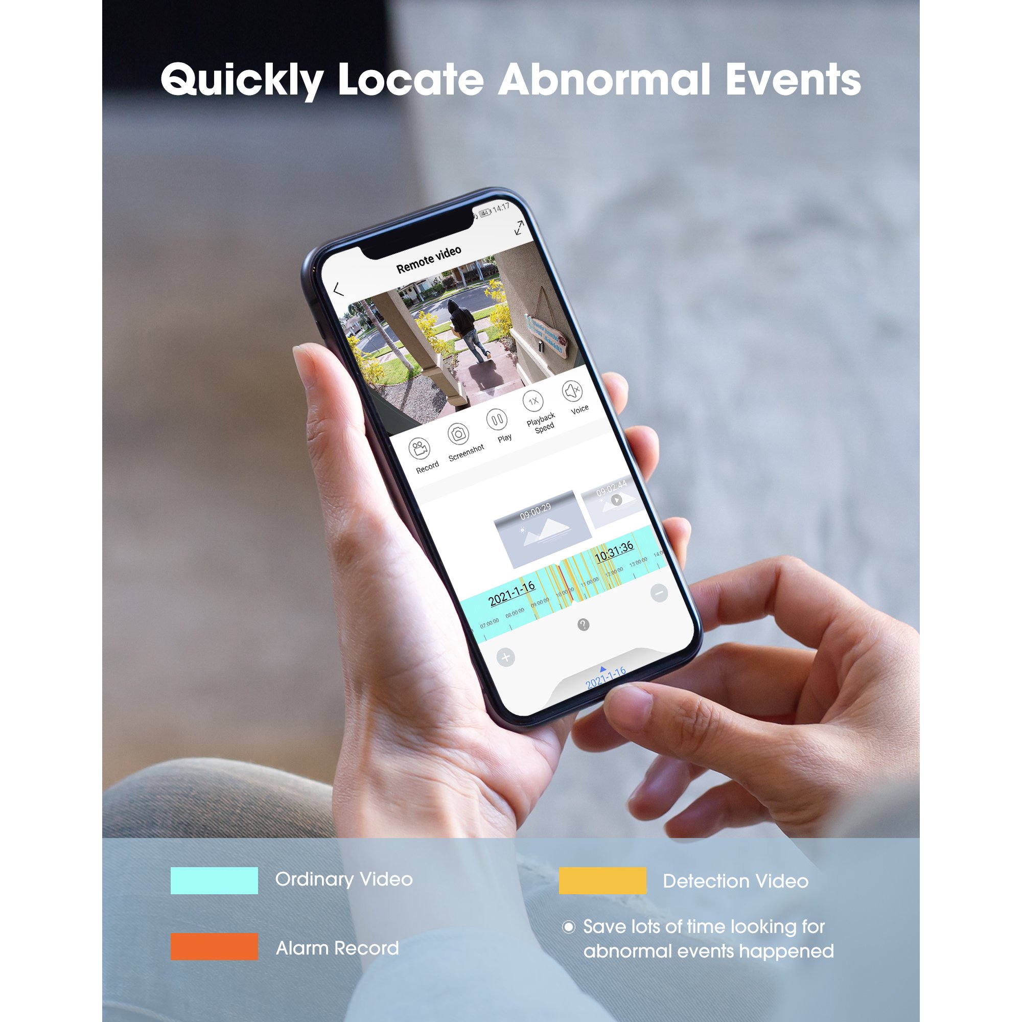 Users can customize the alarm sound by using the text-to-speech feature or using their own voice according to your needs. The camera categorizes video into different, color-coded threat levels, and you can quickly locate abnormal events when previewing footage. This security camera supports Max 128GB storage and has a 2-year warranty.