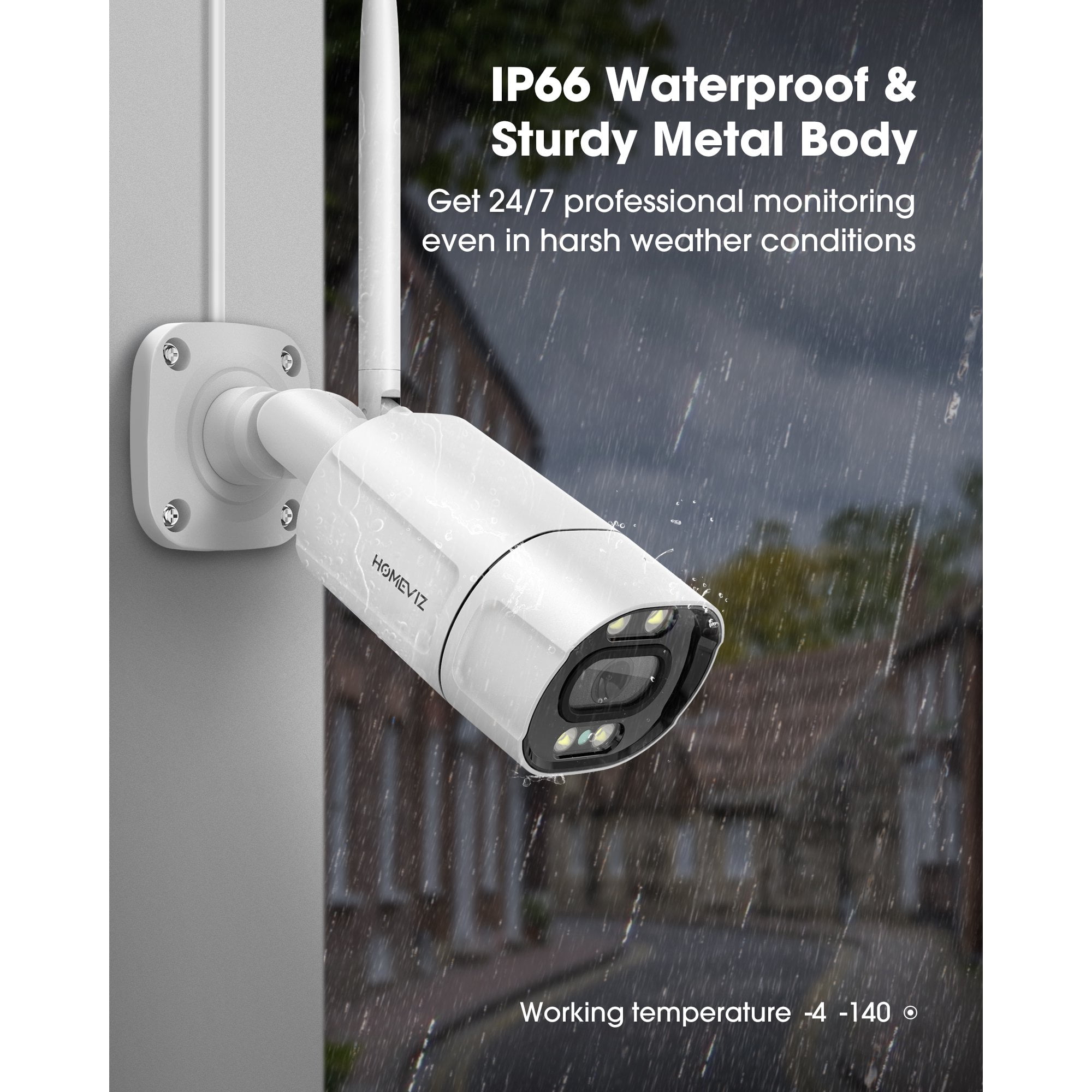 Equipped with 2021 upgraded 3MP sensor, HOMEVIZ OB10 security camera captures ultra HD (2304x1296P) images and videos with crystal clarity. With its enhanced Wi-Fi signal and IP66 waterproof shell, it is the ideal outdoor and indoor wireless camera for home security as well as for offices, shops, hotels, or schools as it gives you clear visual details.