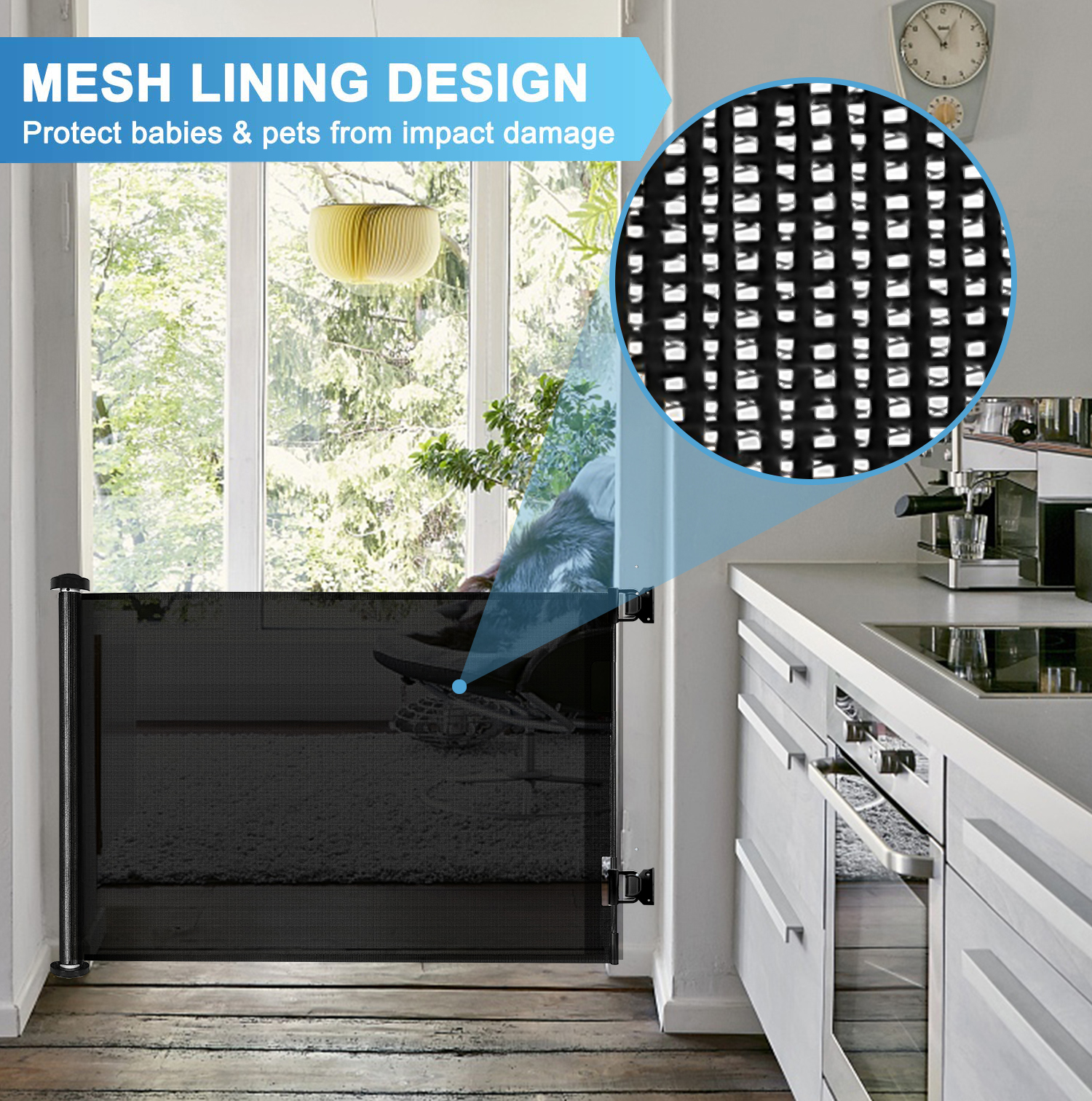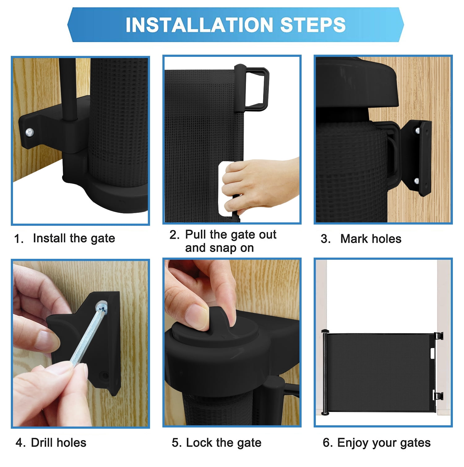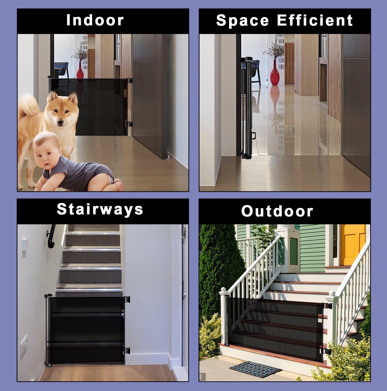 - Safety: Retractable baby gate featured with double locking mechanism creates a safety home for your curious crawlers and keep them away from danger, providing a safe, closed off environment to play