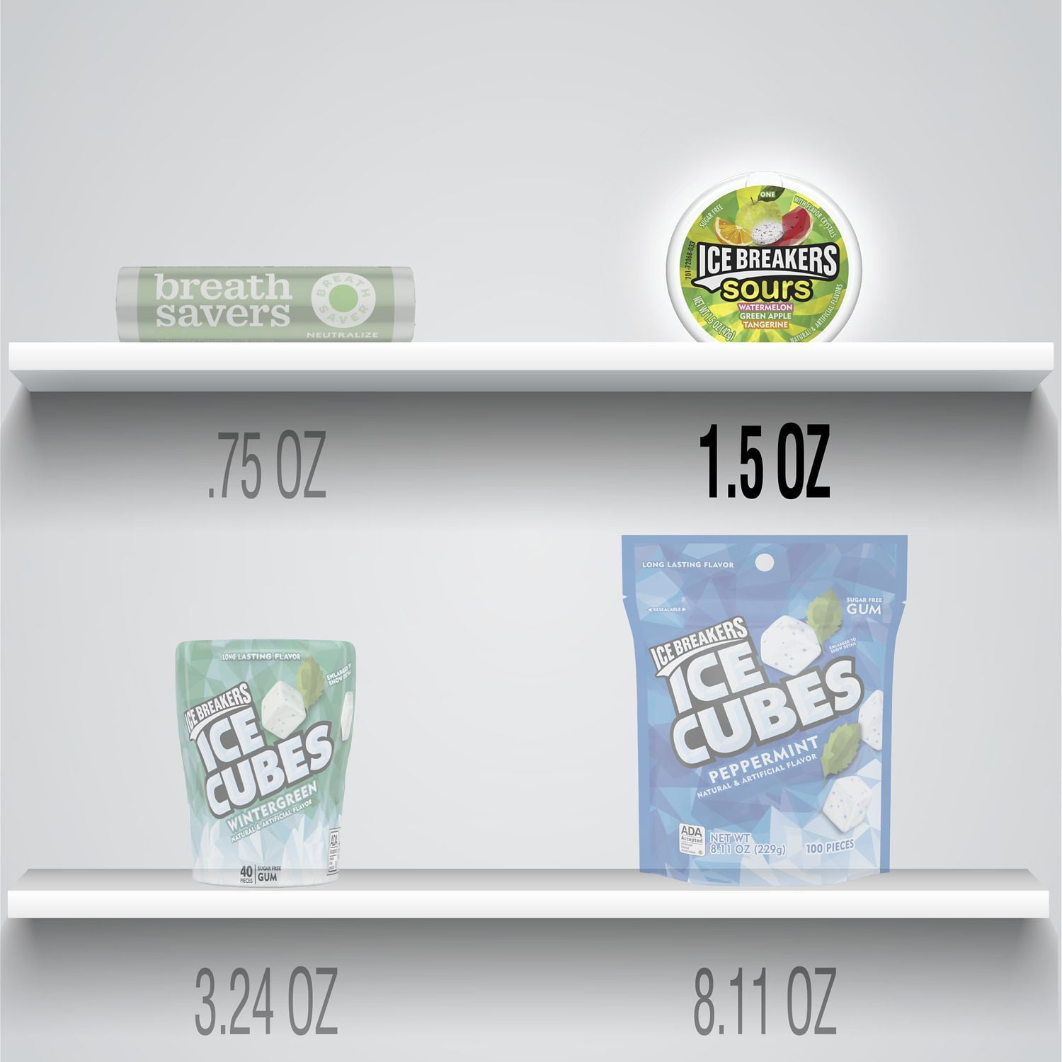 - Eight 1.5 oz tins of ICE BREAKERS Sours Green Apple, Tangerine and Watermelon Flavored Sugar Free Breath Mints