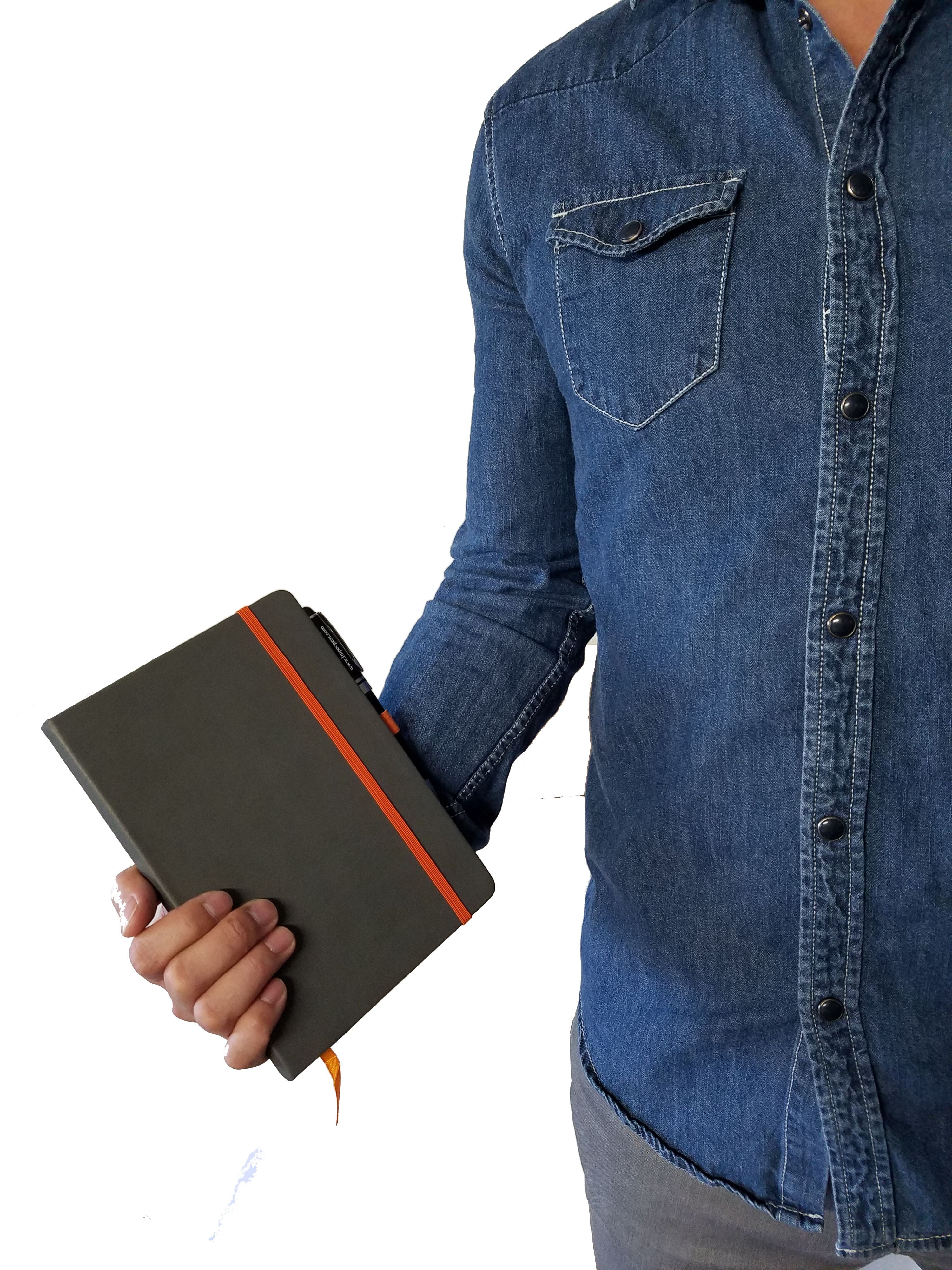 - An attached elastic band stretches around the ImpecGear notebook, from top to bottom, keeping the notebook securely closed when not in use or during transport in a backpack or bag. The elastic closure slides off and out of the way when it’s time to use the notebook.