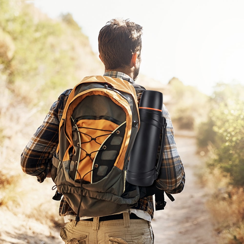 When you need to work or stay outdoor for a long time, you may think what if I want to drink water? Don’t worry! 68 oz Insulated Bottle can solve this problem for you! Large capacity can totally meet your needs of water one day. Double wall vacuum insulation technology can keep drinks warm and cold all day. You can enjoy a cup of ice water in hot summer or warm coffee in cold winter. It is absolutely the best choice for you in various activities like fishing, hiking and camping.