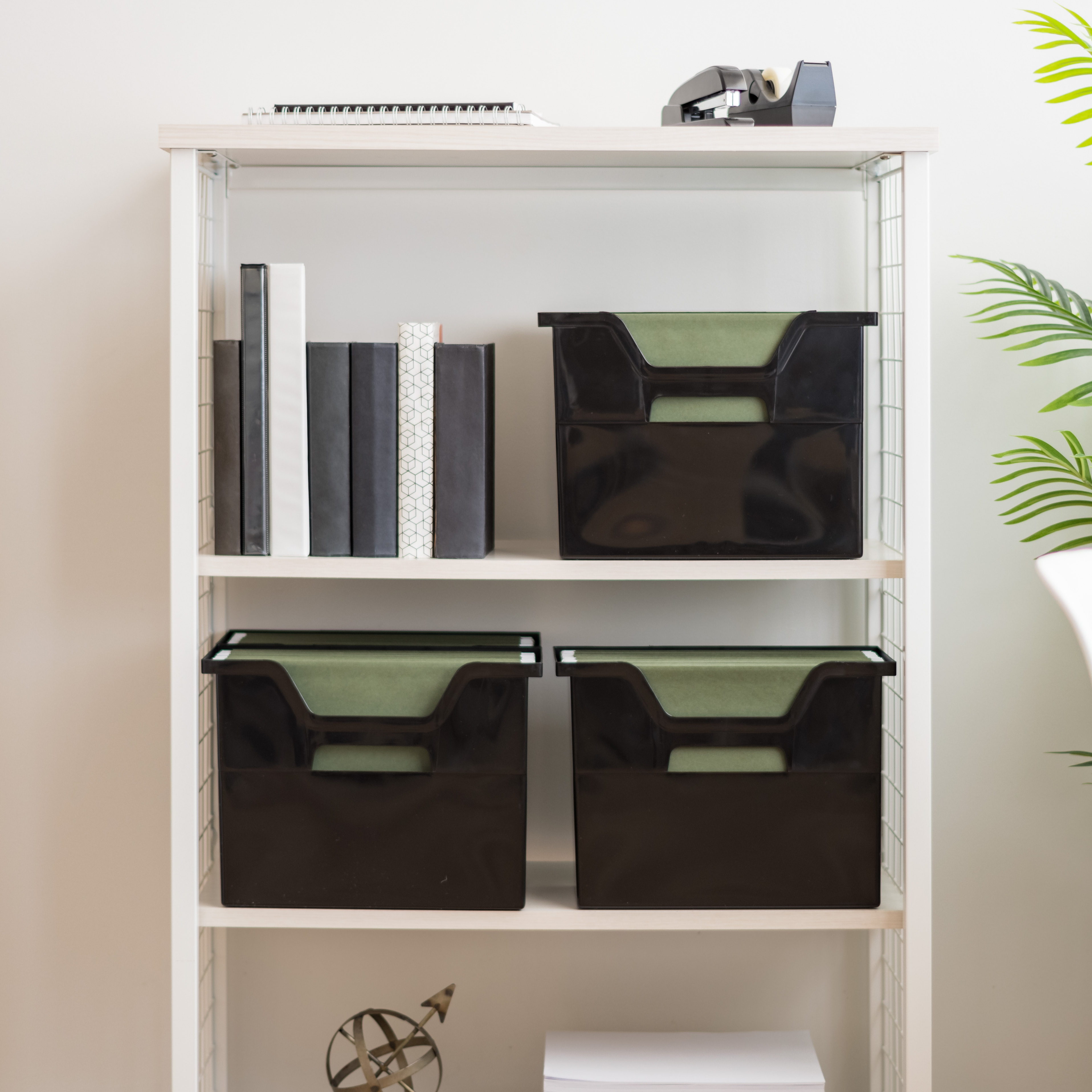 These medium desktop file boxes by IRIS USA come in handy to store files, binders, books and more.