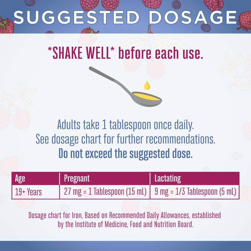 - Easy to Take Liquid: This essential mineral comes in an easy-to-take liquid form to support your iron intake, in a delicious berry flavor. Formulated for those Pregnant or Lactating. Shake well before use. Take 1 tablespoon once daily, by itself. Do not exceed the recommended dose. To best optimize absorption, take this product at least 2 hours before or after consuming calcium.