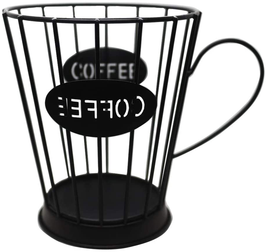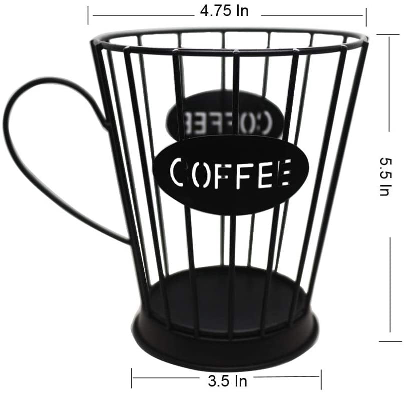 DESCRIPTION:- Declutter Countertops with This Coffee pods Keeper Pod Holder Kitchen Storage Holders for Capsules. Coffee Pods Holder Storage Basket Espresso Coffee Mug Shape Storage Basket Material: Made of sturdy metal with a cut-out ‘COFFEE’ word on both sides. Coffee mug designed to hold and organize a variety of expresso and coffee pods. MEASURES: 4.75"W x 3.5" D x 5.5"H; Color: Black FEATURE: Declutter your countertop with this Coffee Cup Keeper. It’s a fun way to store your favorite brews and access them easily. Easy to see all varieties and easy to fill. Holds at least 12 coffee pods. Made of High-quality heavy-duty Sturdy steel, difficult to be deformed Outstanding: Place it next to your coffee machine, it is a great addition to your kitchen. It saves a lot of cupboard space. It’s easy to see all varieties and easy to fill. you can quickly access your favorite drink. Large capacity with a small footprint, it won’t take up precious counter space and holds up to 12 coffee pods and even more espresso pods. It can also be used to hold creamers, tea, fruit, utensils. GIFT: Make a perfect gift for friends, family, and coworkers who is a coffee lover. We all know a coffee lover, this coffee Storage Basket is the perfect wedding, anniversary, or birthday gift for your coffee-loving friends. Package includes1pc x Coffee Storage Basket 5.5"