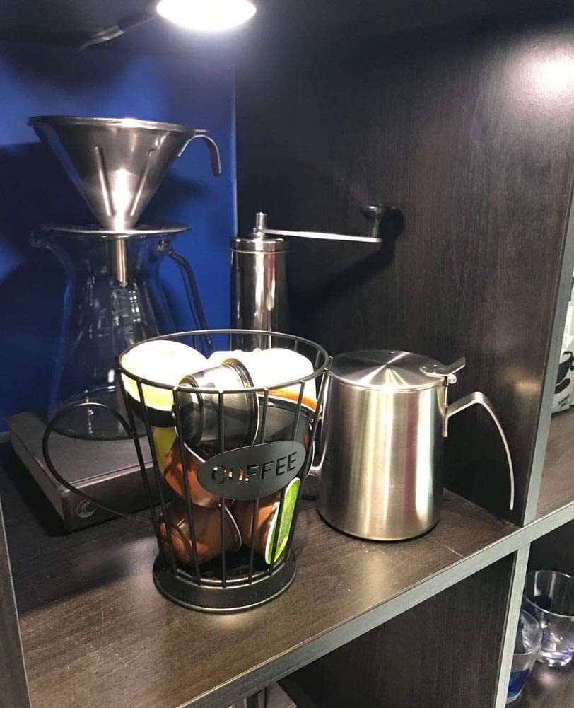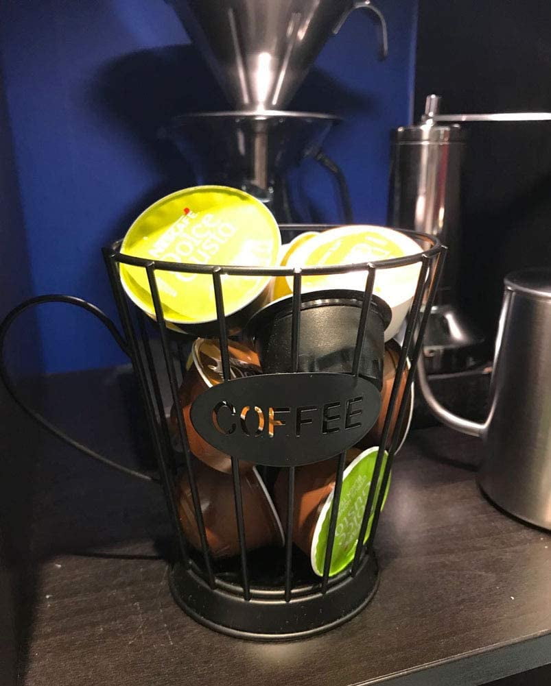- MULTI-PURPOSE BASKET – This novel metal basket is not just for holding coffee pods but also can store fruit, bread, cookies, and drinks, meet your various needs.