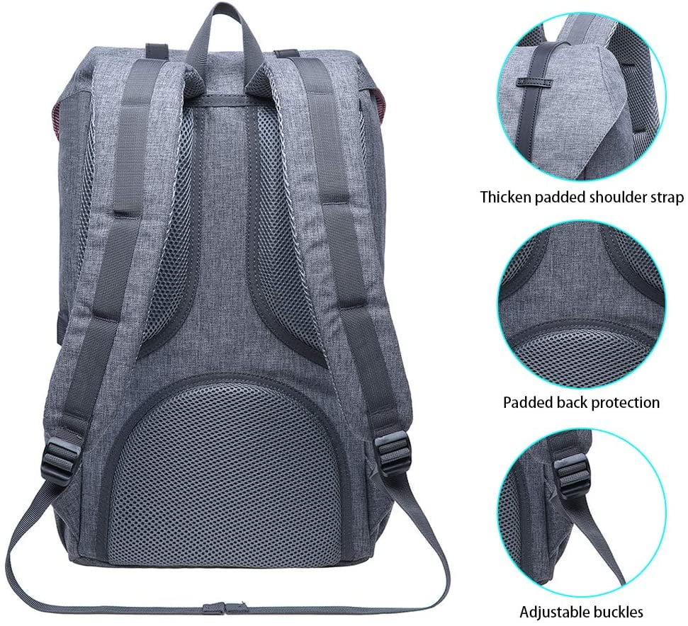 HIGH QUALITY & DURABLE MATERIAL. HIGH QUALITY NYLON LINING makes the backpack soft and comfortable. The rucksack backpack is more high-end with the water-repellent 600D POLYESTER FABRIC, durable and easy to clean. The contoured shoulder straps and back side comes with protective air mesh padded design, easy and comfortable to carry throughout all day. Adjustable padded shoulder straps (45-90cm), tighten and loosen easily.