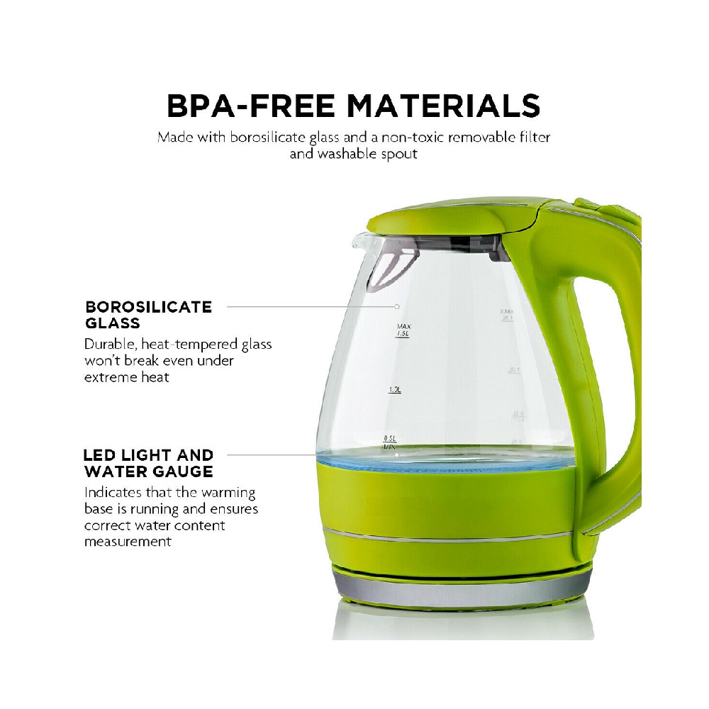 KG83 Series Portable Electric Glass Kettle 1.5 Liter Color Green