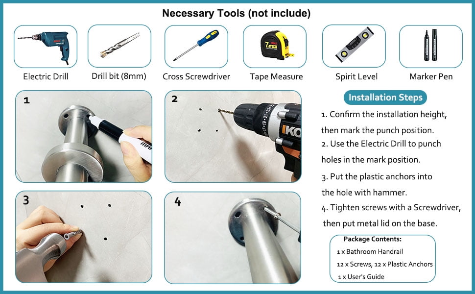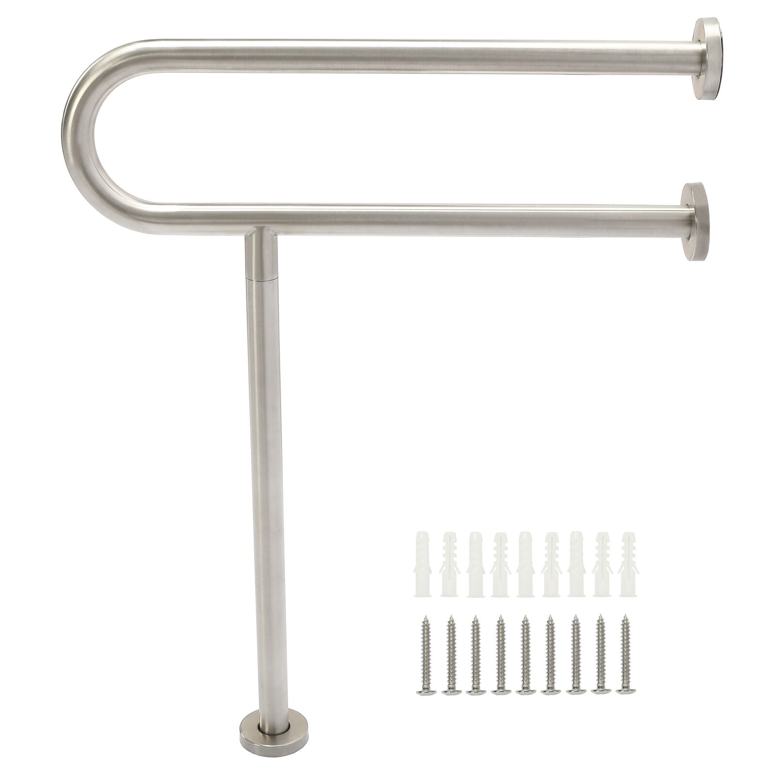 【24 Inch】HIGH QUALITY HANDICAP GRAB BARS: This handicap handrails made of 304 stainless steel, diameter is 32mm*1.1mm ,sturdy and durable, grab side bar supports up to 440lb weights. PRACTICAL HOME CARE: The medical safety toilet hand bars designed for seniors,pregnant, elderly, disabled , post-surgery mobility-impaired people, prevent them slip or fall down. GREAT BATHROOM TOILET SUPPORT: T-shaped handicap rails is mounts to wall and floor design, to help user keep balance in the bathroom. EASY INSTALLATION – you can installed this toilet grab bar in short time according to the instructions. If you are looking for a bathroom safety grab bar with leg, We recommend you choose this this hand grip. APPLICABLE SPACE: barrier-free facilities or family toilets in public places such as bathrooms, hospitals, nursing homes, welfare houses, disabled activities centers, and hotels.
