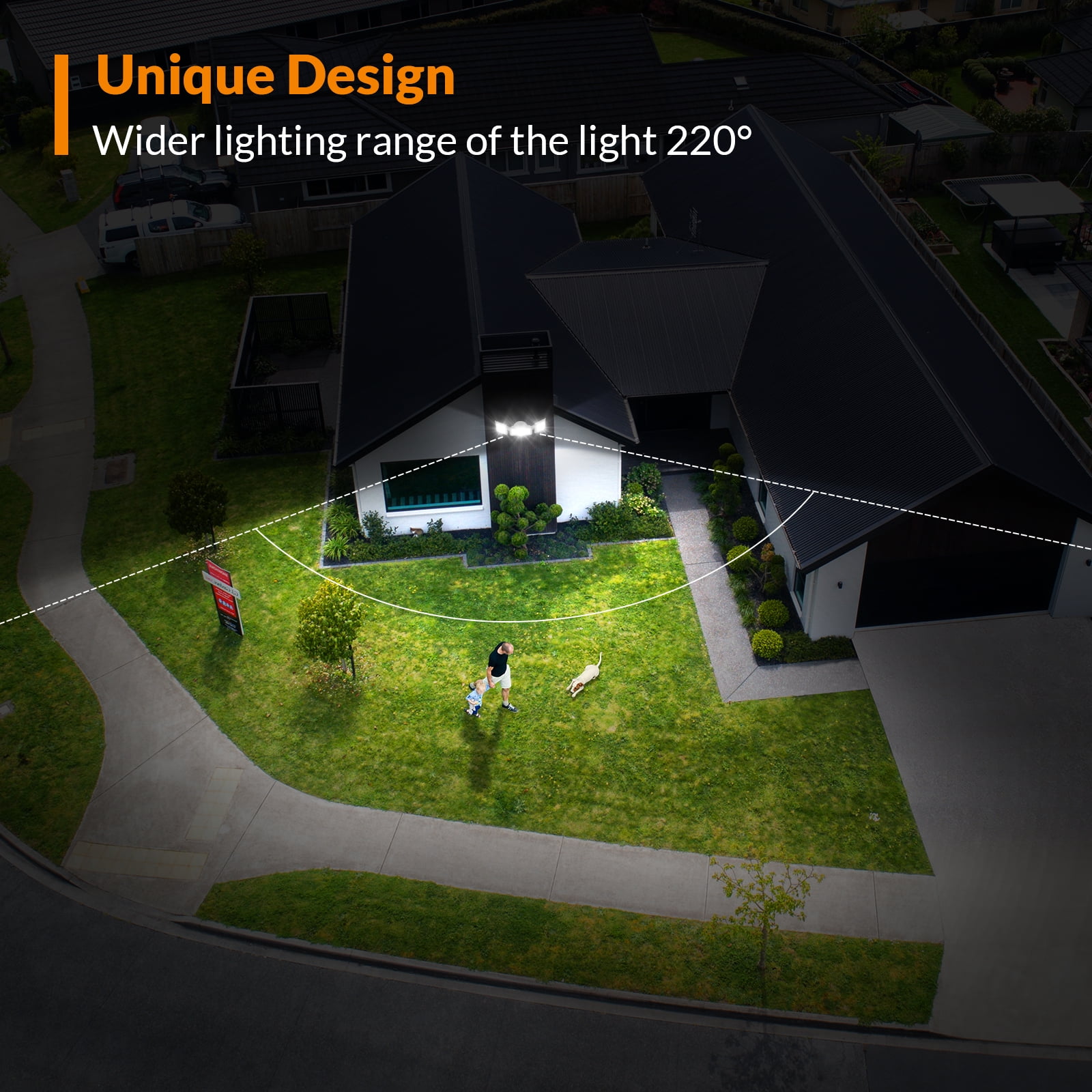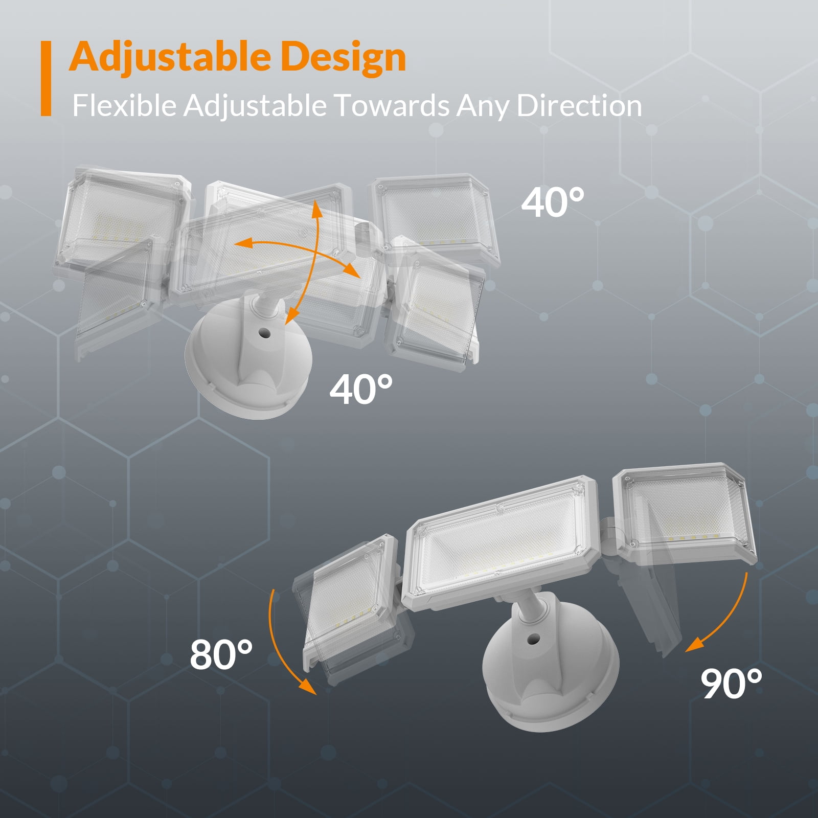 LED Security Flood Light is part of Lepower’scontinuing pursuit of creating efficient, convenient, energy-efficient products for our customers. With innovative lamp head design and bright lighting, it fuses innovation with functionality, standing out from its counterparts. The flood light provides 4200lm soft, anti-glare, and bright light. The beam angle of LED security light evolves to 220° from 180° by innovative folded surface lighting design on 2 sidelights. The flexible lamp heads design can be adjustable in any direction in which you need bright light.