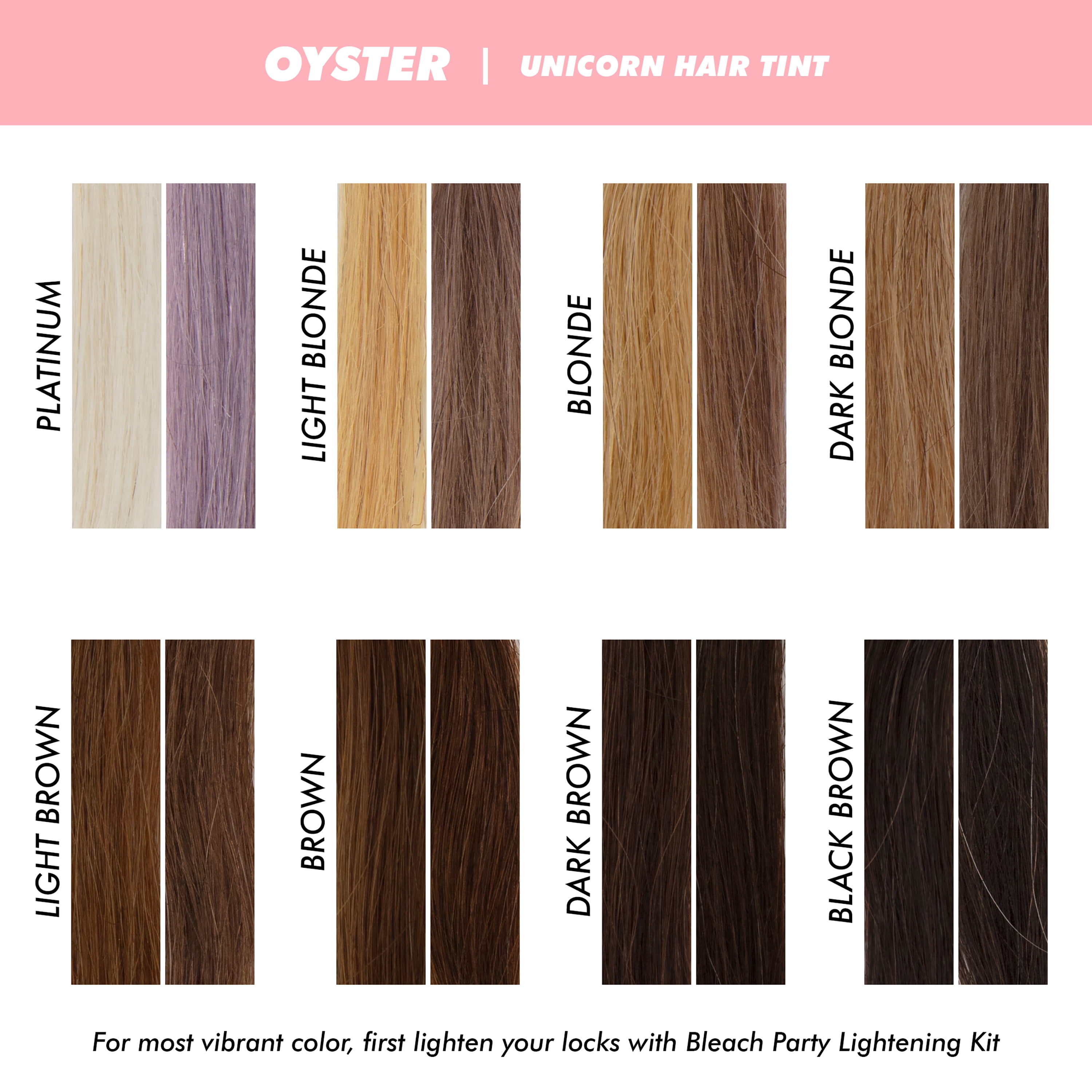 Dyed and gone to Unicorn Heaven! For some serious fantasy color that is vegan and cruelty-free, look to Lime Crime. Lime Crime Tints DIY-friendly, damage-free formula leaves a light wash of fantasy color to add a kick of cool to your hair. The Oyster Color Hair Tint produces a lavender grey that will turn you into a real-life unicorn! Our ultra-conditioning Unicorn Hair Tints can transform hair into a rainbow of magical shades while leaving strands silky smooth and smelling sweet with the sugary citrus vanilla scent. The Tints formula deep-conditions while depositing long-lasting color that fades gracefully. The Tints range includes pastel, muted, and lighter shades, and the watercolor effect of Tints leaves a soft wash of color on pre-lightened platinum to pale blonde hair. Results may vary depending on the color and condition of hair. Always do a patch and strand test before committing to your whole head.
