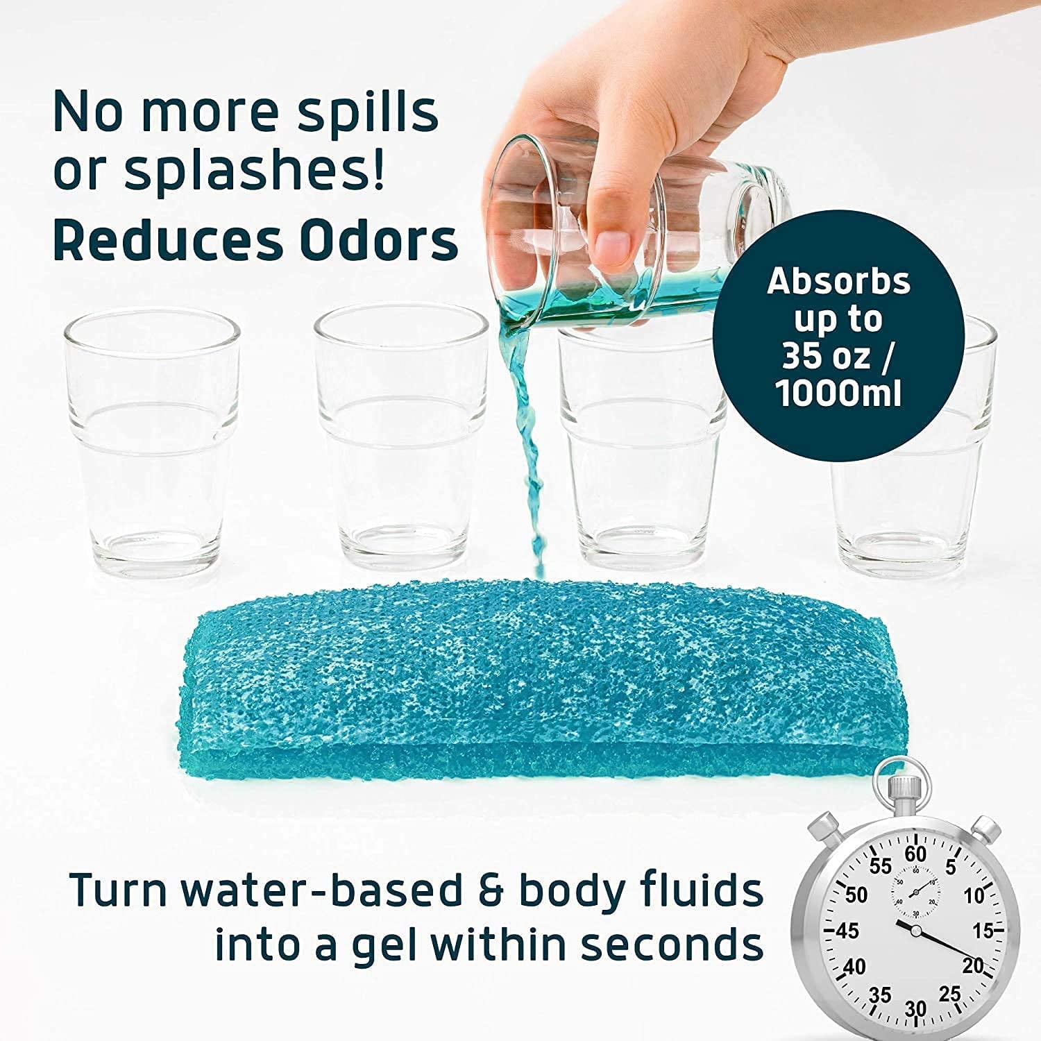- NO MORE SPILLS OR SPLASHES – The Super Absorbent pads turn water-based & body fluids (up to 35 oz /1000ml) into a gel within seconds while REDUCING ODORS.