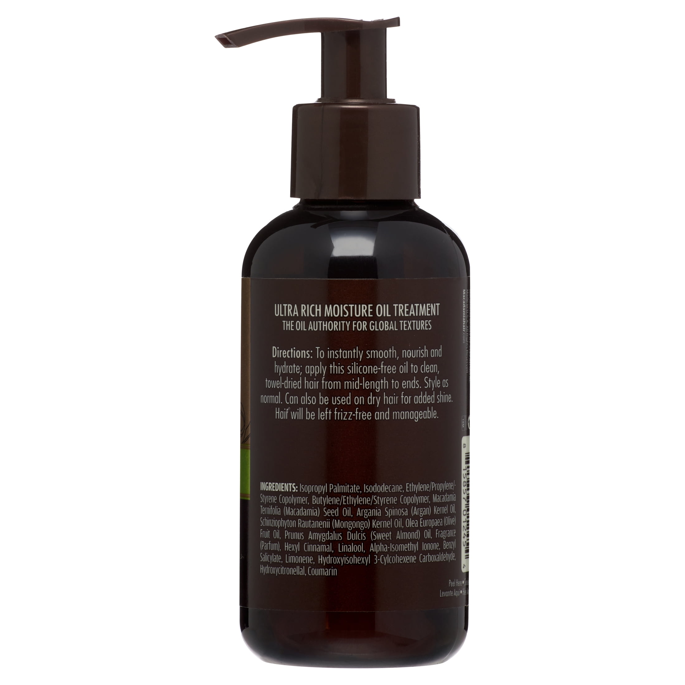 Oil Treatment, Ultra Rich Moisture, Professional, Bottle 4.2 OZ Texture: Very coarse – coiled. Benefits: strengthen, hydrate, defrizz. Pro oil complex. Macadamia & Argan oil blend. free of sulfate, parabens & gluten. Color safe. Cruelty-free. Macadamiahair.com. Ultra Rich Moisture Oil Treatment: The oil authority for global textures.