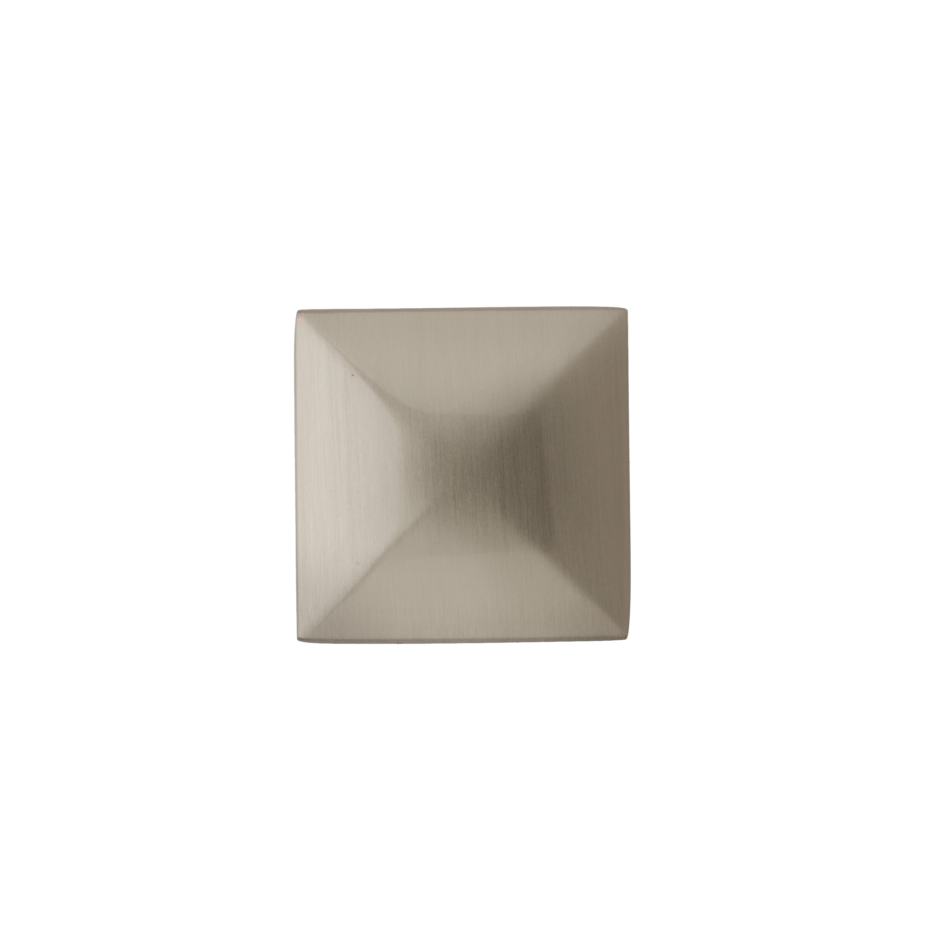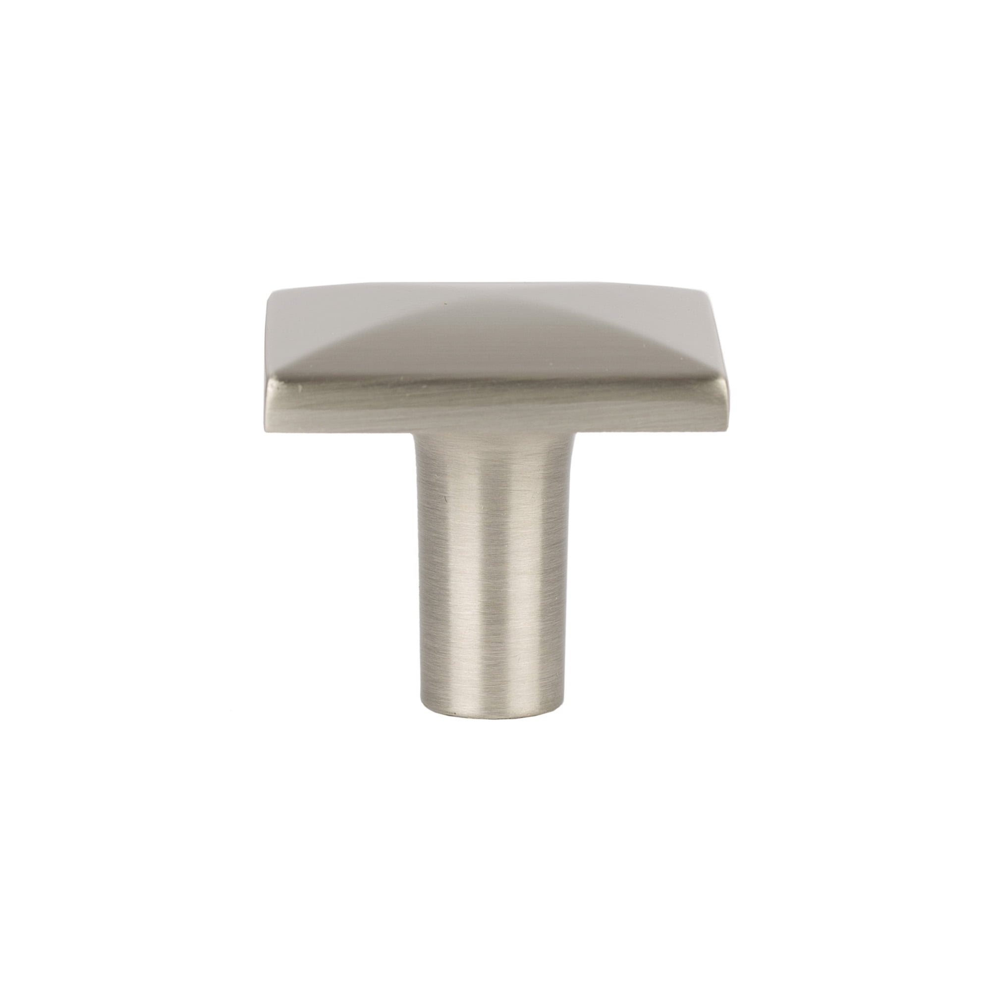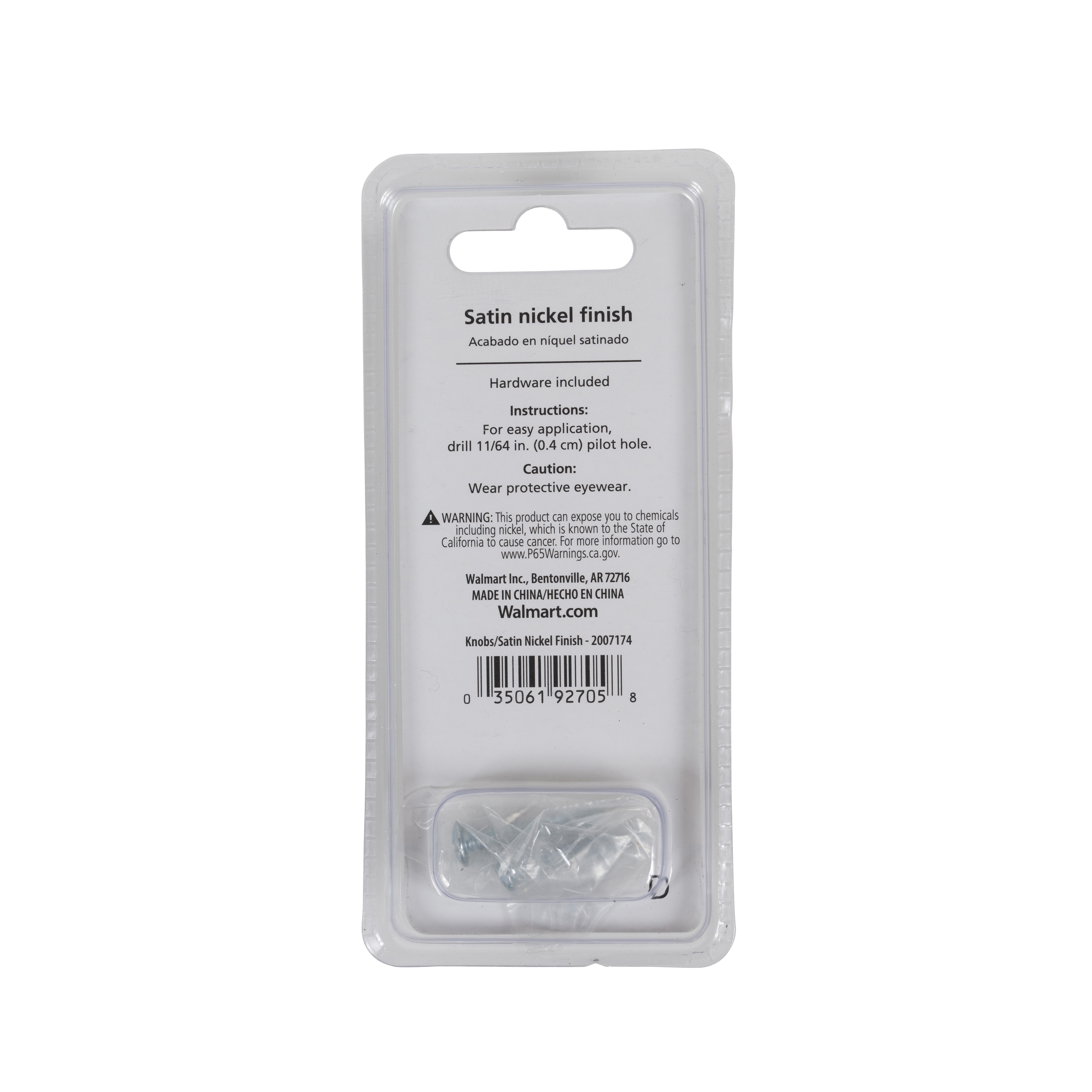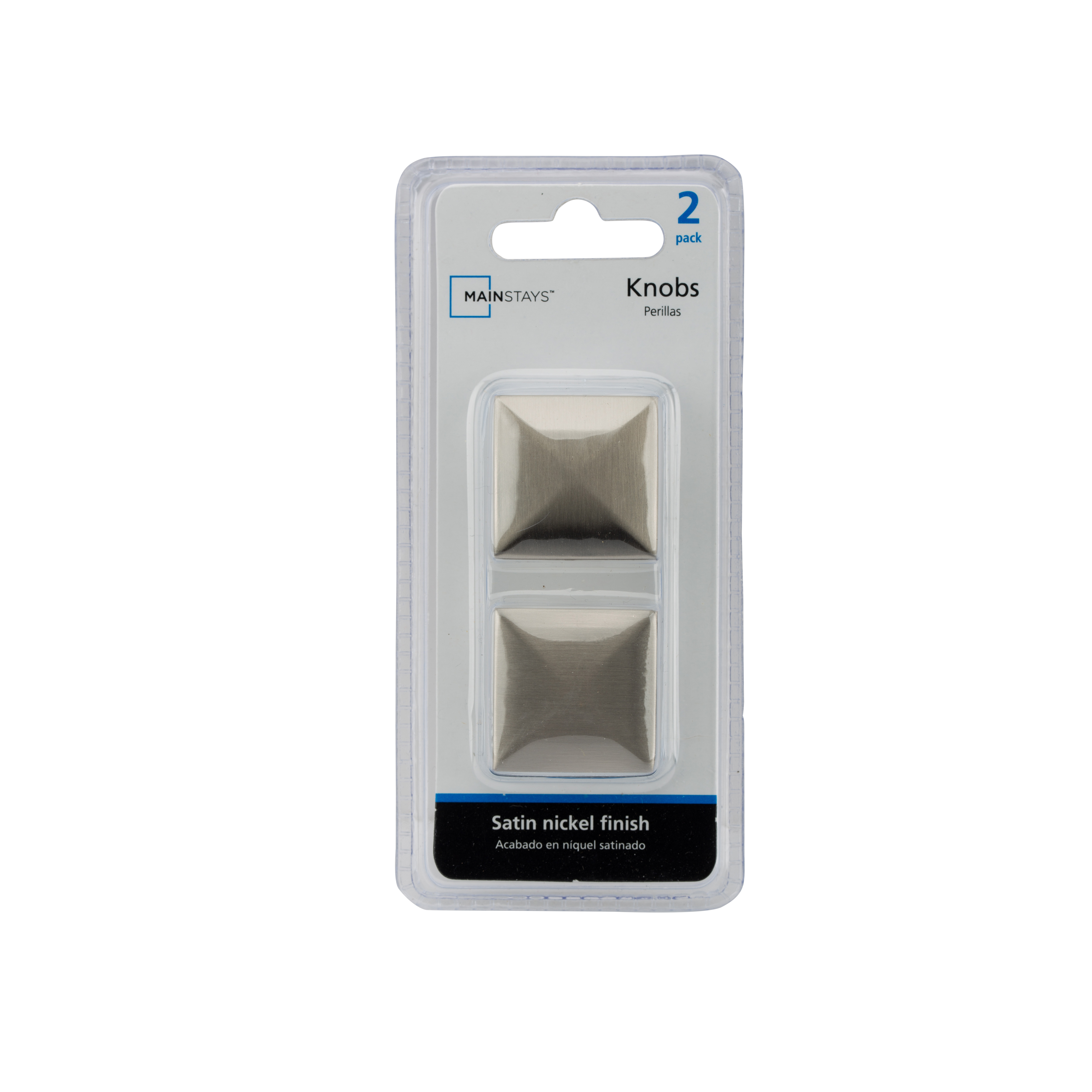 The Mainstays Square Cabinet Knob in satin nickel will bring a touch of timeless elegance to your space. Give your kitchen or bathroom a quick update by simply replacing the cabinet hardware. Refresh cabinets or transform dressers, desks and other furniture from ordinary to outstanding. The soft lines and classic geometric design compliments modern-day furnishings for a look of refinement. The versatile satin nickel finish has a warm gray undertone with lightly brushed surface, sure to compliment a wide range of decorative styles. This knob measures 1-3/16 inches (30 mm) in diameter and is crafted from a zinc for durability. The package includes (10) cabinet knobs and (10) 8-32 x 1 inch mounting screws for a quick, stress free installation. This modern square knob is also available in an oil rubbed bronze finish.