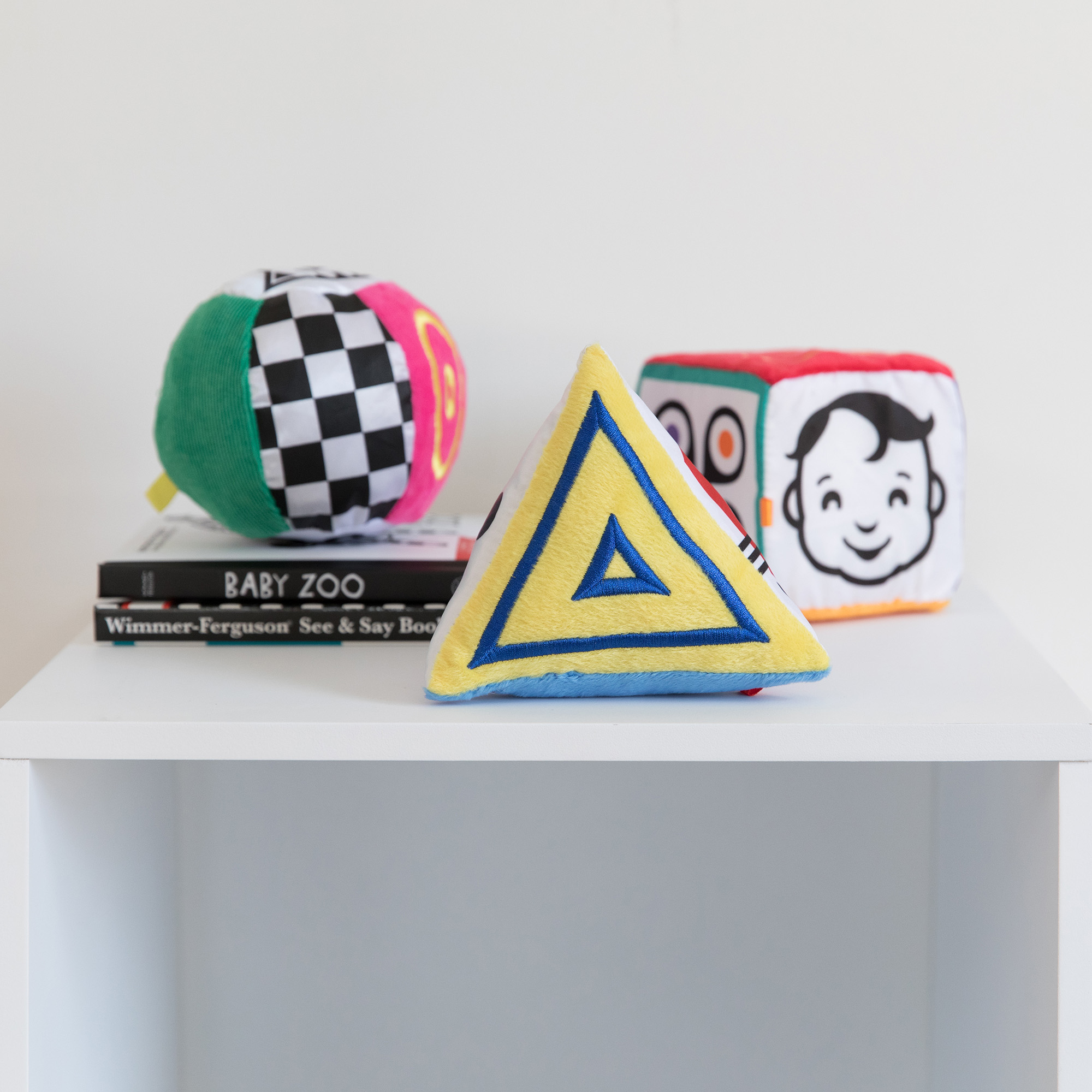 - MIND-SHAPES MULTISENSORY PLAYSET DETAILS: Each shape features visually stimulating, Wimmer-Ferguson researched black and white and color print graphics and hidden auditory stimuli, such as crinkle paper, a rattle, and a chime.