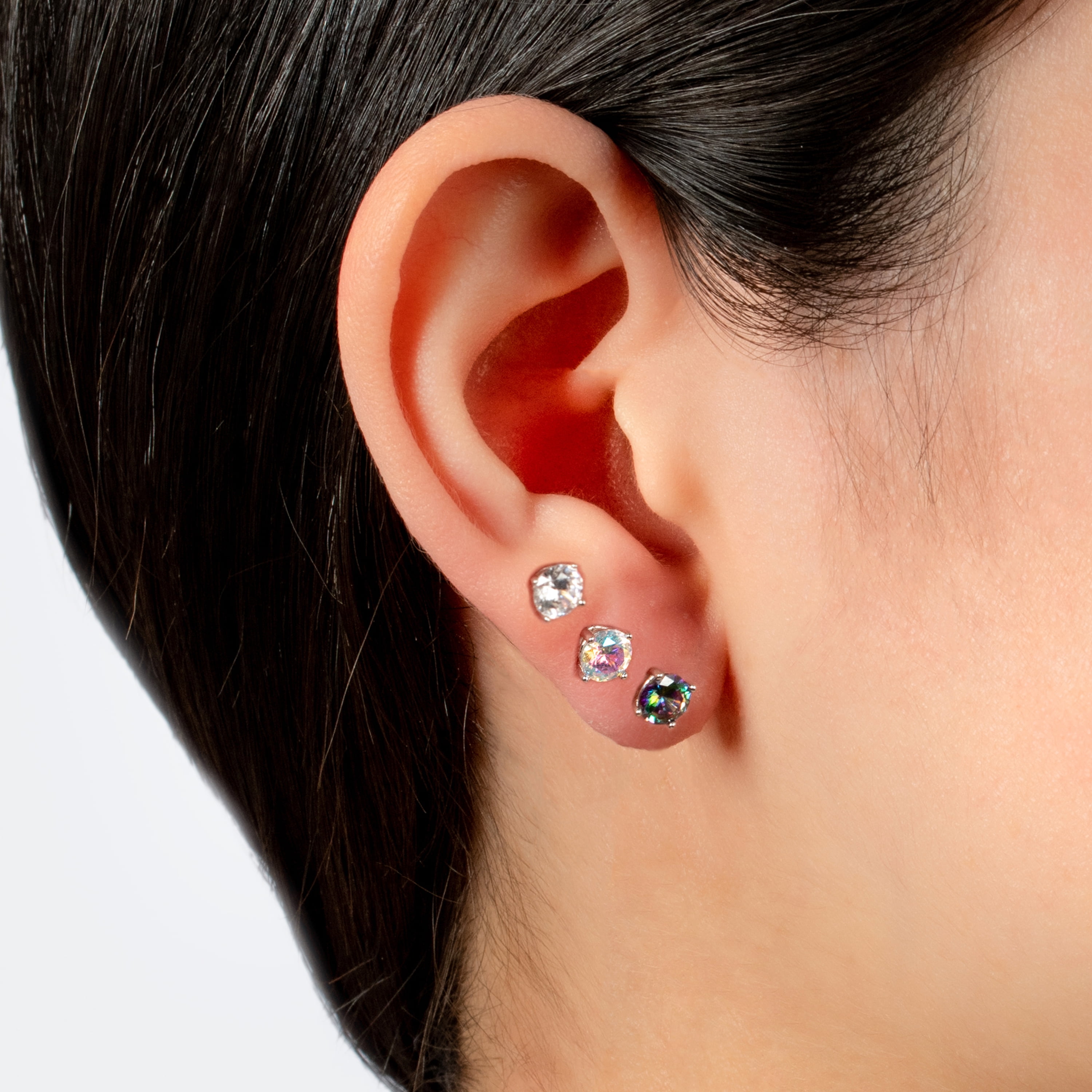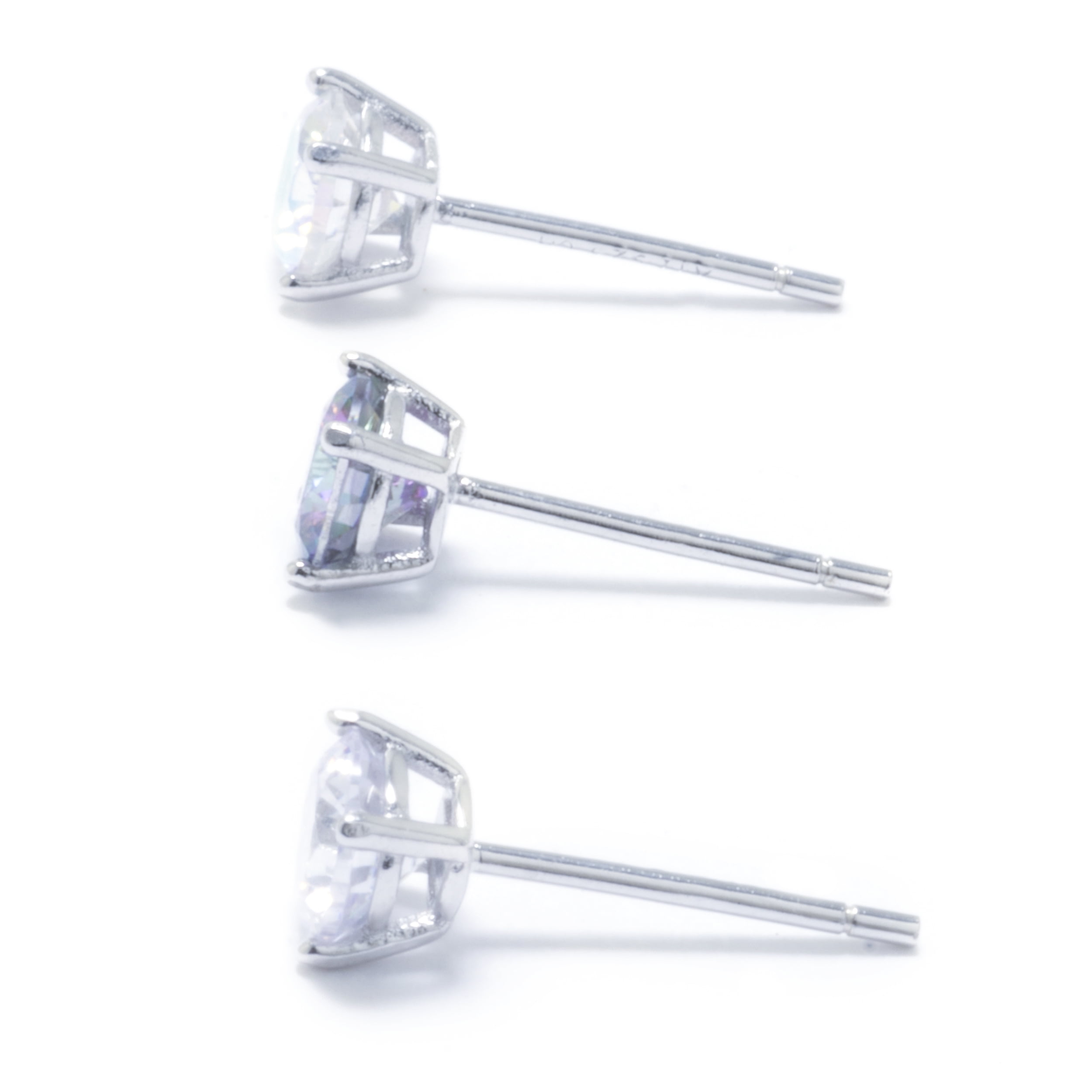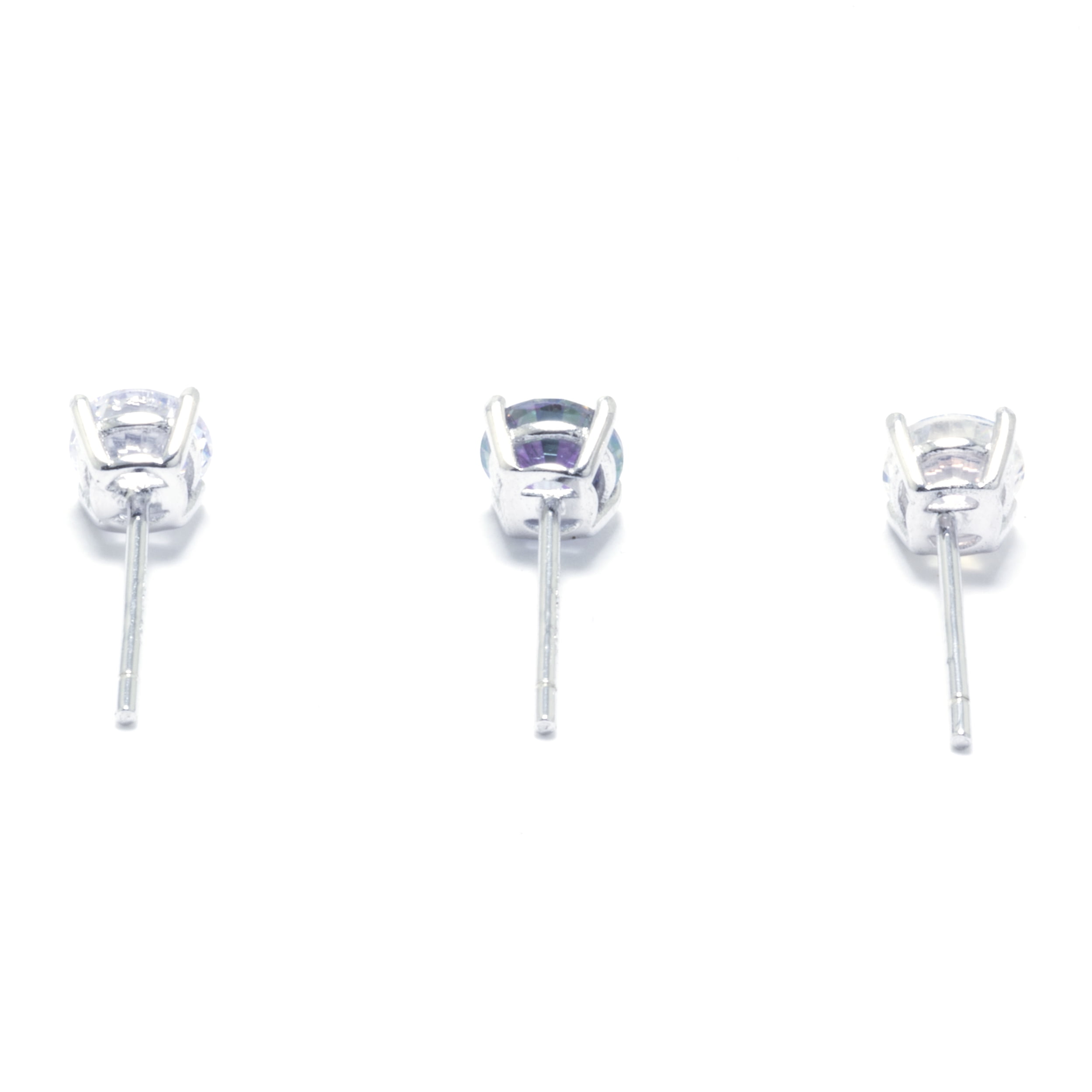 Sterling Silver 5mm Clear, Mystic Fire and Aurora Borealis Trio Earring Set. The perfect trio Wear these 5mm Cubic Zirconia Studs in Clear, Mystic Fire and Aurora Borealis together or separately. Post and friction back closure for comfort and safety. Crafted in sterling silver. Stud set of 3 pairs earrings, mix and match earrings, modern small stud earrings. Jewelry type: Fine, Style: Stud, look: Fashion, classic, Clasp: Butterfly, Metal: Sterling silver, Gender: Female