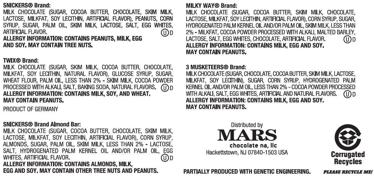 - This assorted box of 30 full-size chocolate bars has a favorite MARS Candy Brand for everyone