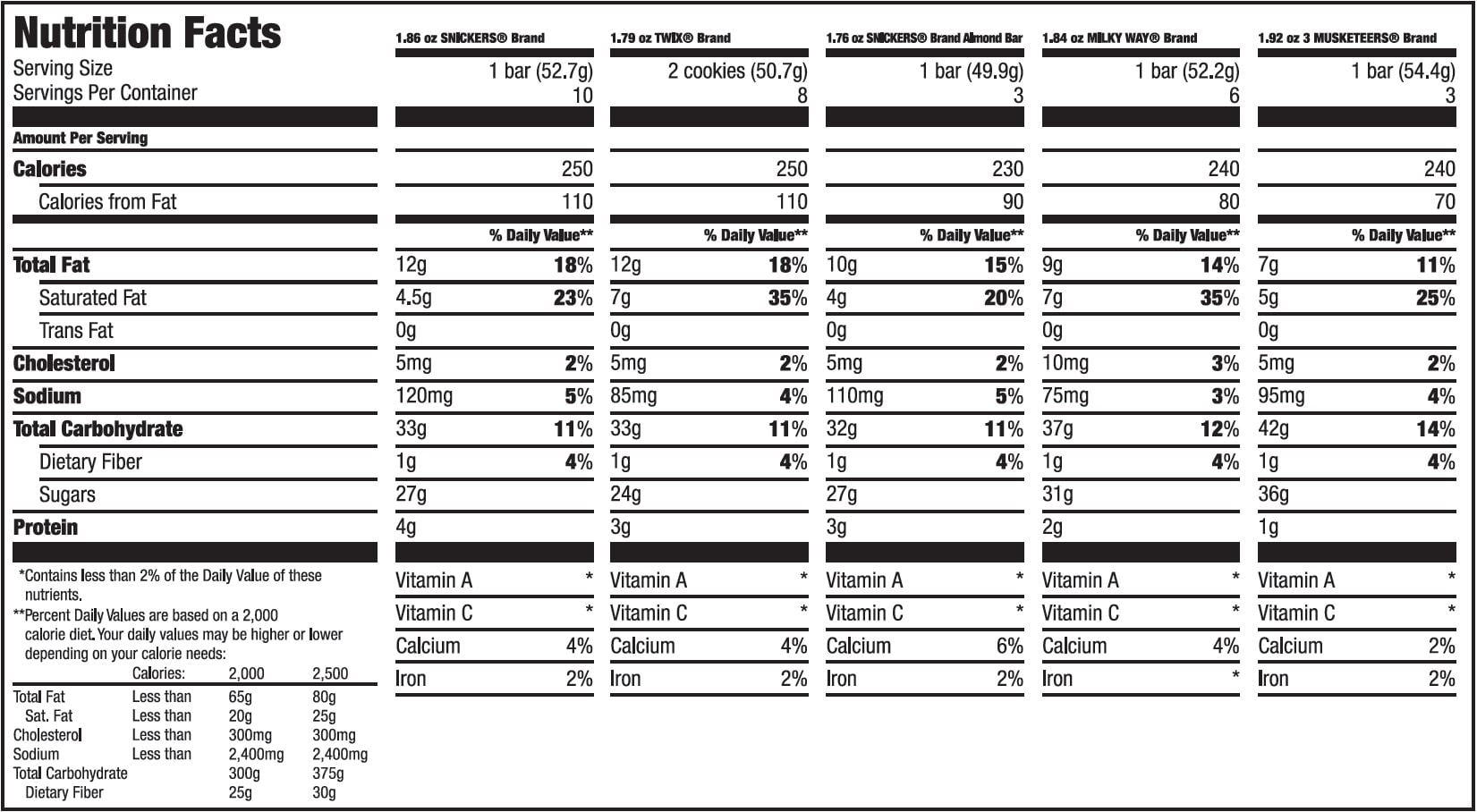 - Contains one (1) 55-ounce, 30-count box of full-size, individually wrapped (10) SNICKERS, (8) TWIX, (3) SNCIKERS Almond, (6) MILKY WAY, and (3) 3 MUSKETEERS Chocolate Candy