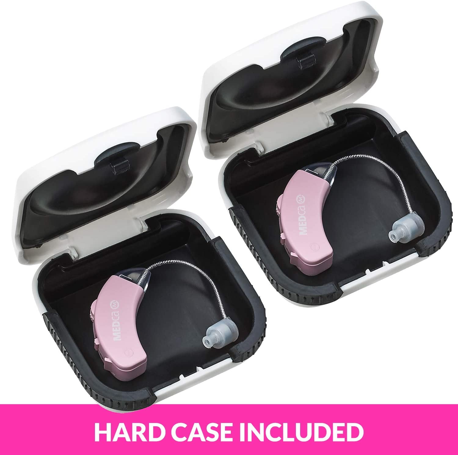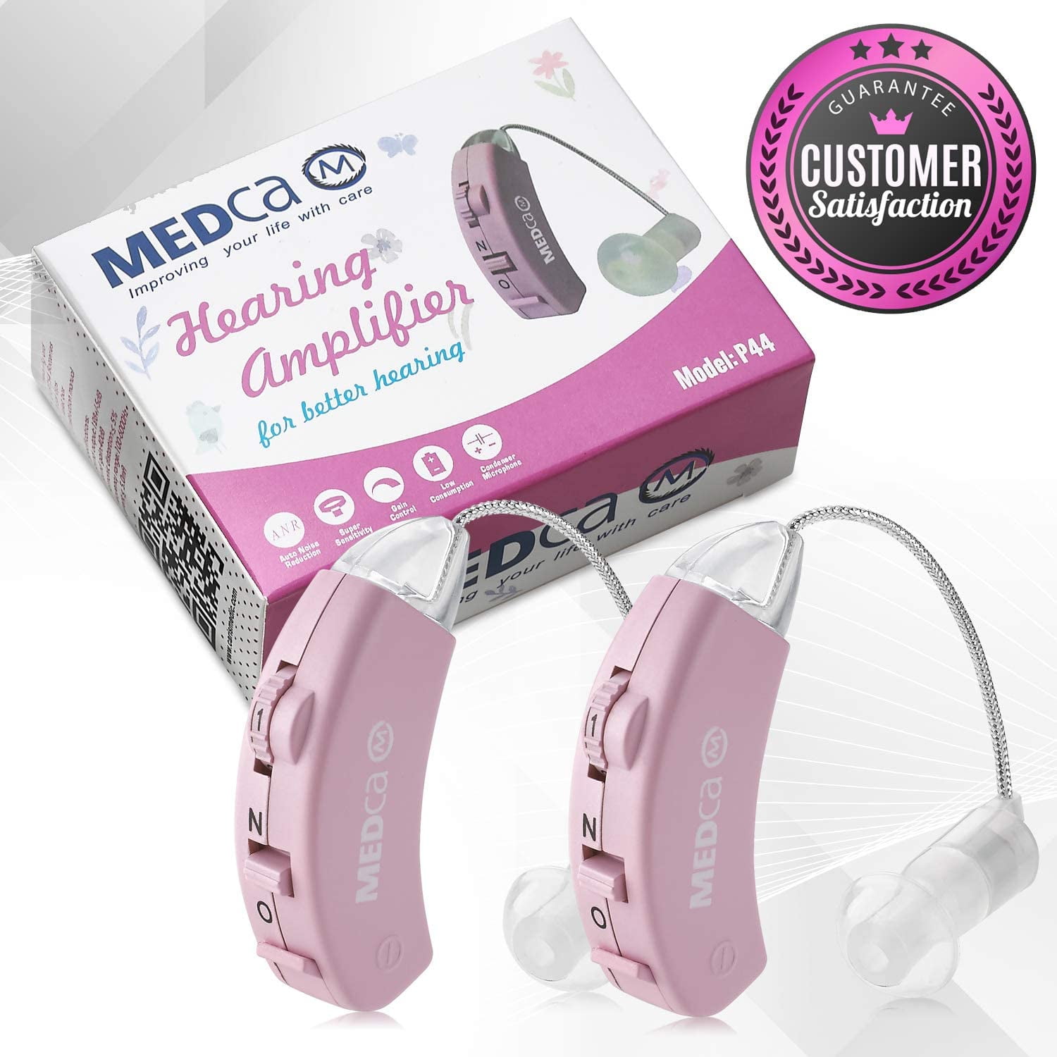MEDca Digital Hearing Multicolor Amplifiers Set of 2 Best Hearing Give the Gift of Sound and communicate with your friends the way you used to with the MEDca Digital Hearing Pink amplifier set. It features 6 levels of volume, full body circuitry, noise reduction, and a digital volume controller which means that you’ll have total user control. It features precise sound amplification, quick and accurate settings, light and comfortable design, and is designed by an expert audiologist. It also includes a user friendly instruction manual so you can take the guessing game out of setup.The Most Affordable Hearing Amplifier Set You Will Ever Need. MEDca digital hearing amplifiers offer the best in class
