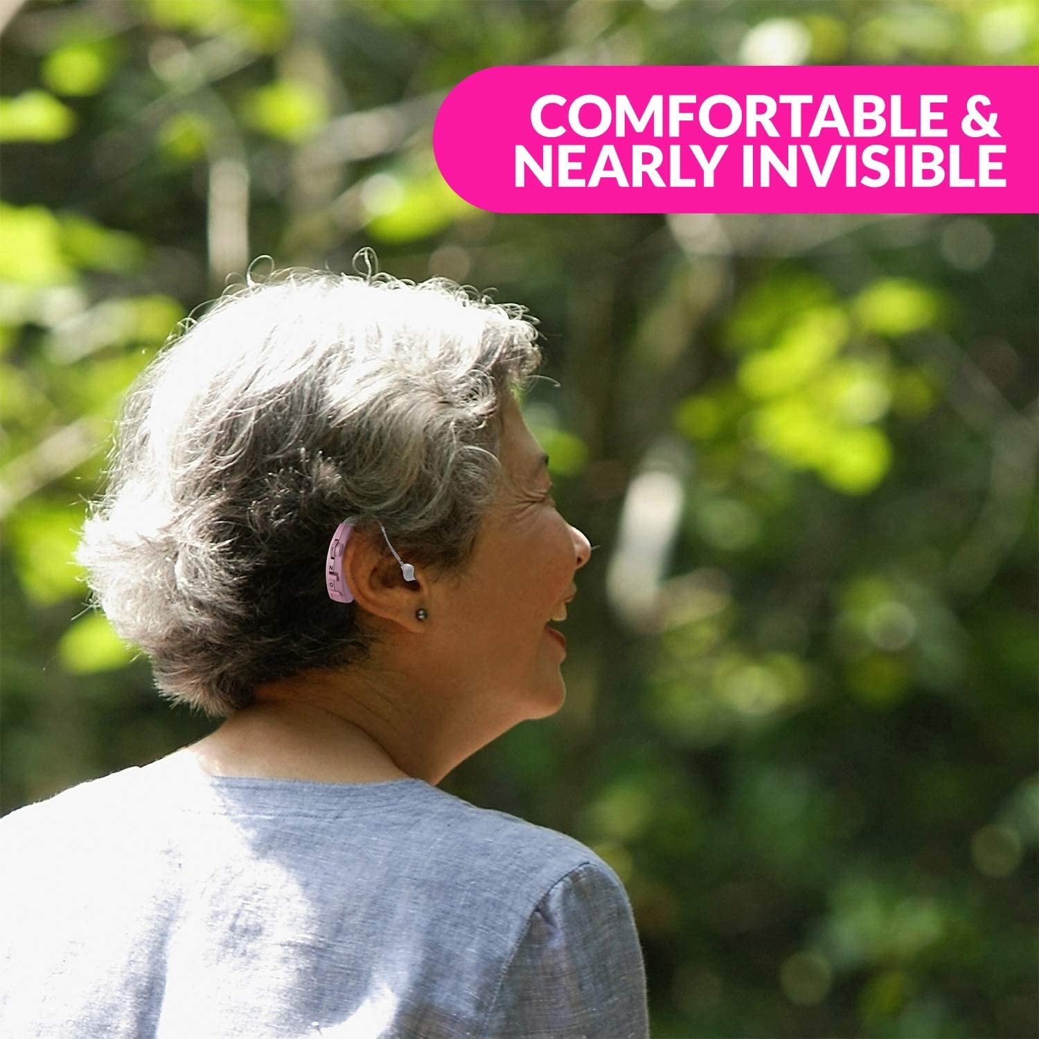 - LIGHTWEIGHT & COMFORTABLE: This BTE amplifier is so small, discreet and comfortable you’ll forget that you’re wearing it which is especially important so you can wear it all day. Compared to other 12-band devices this very small hearing amplifier set fits discreetly and comfortably behind the ear which means that it’s easy to keep them out of sight when you want to do so