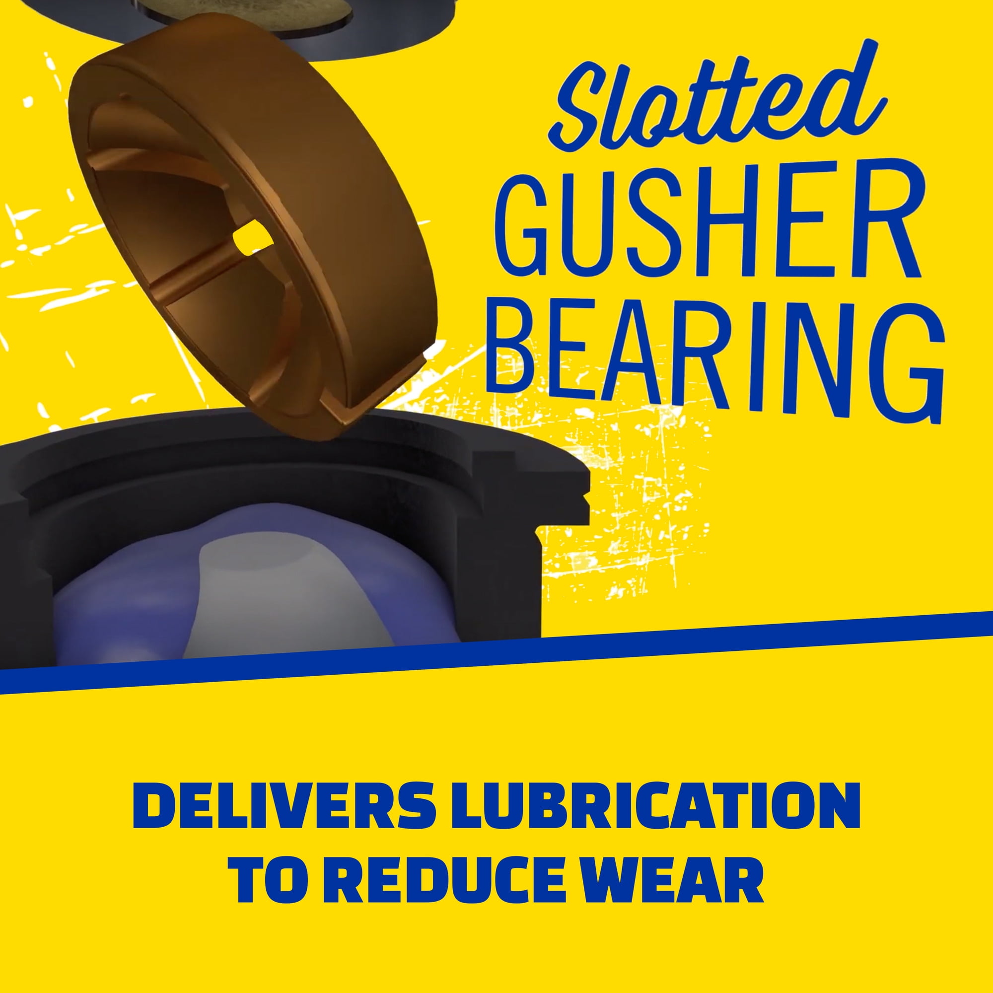 - PROBLEM SOLVERî GUSHER BEARING — Metal-to-metal design provides strength and allows grease to flow through bearing surface for reduced friction and long life