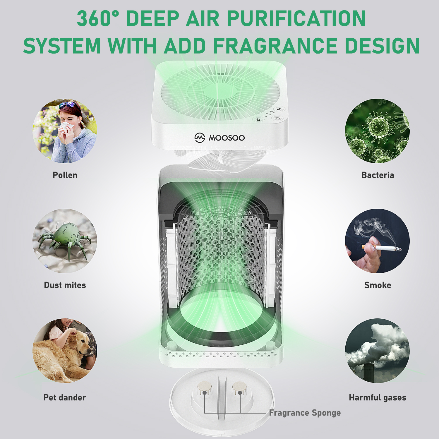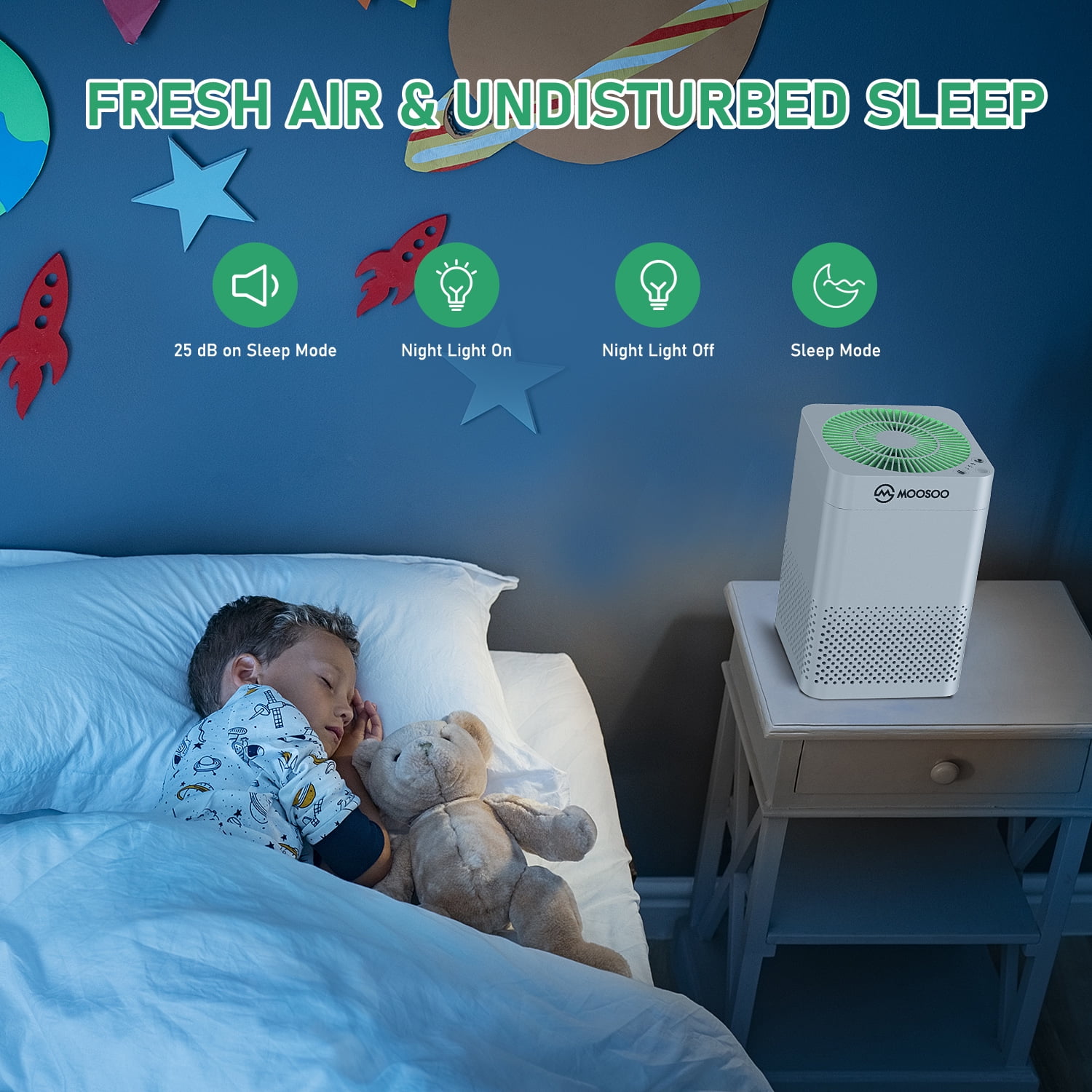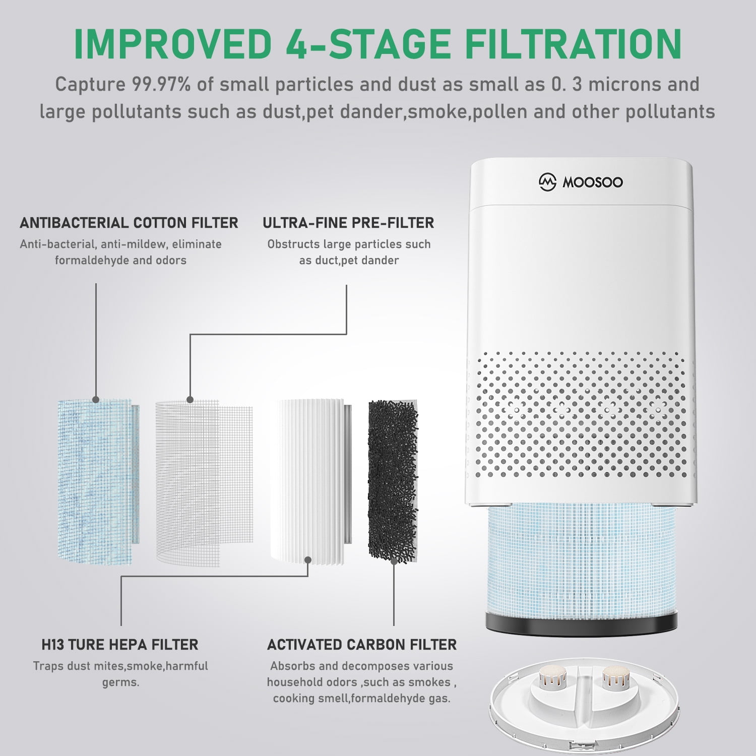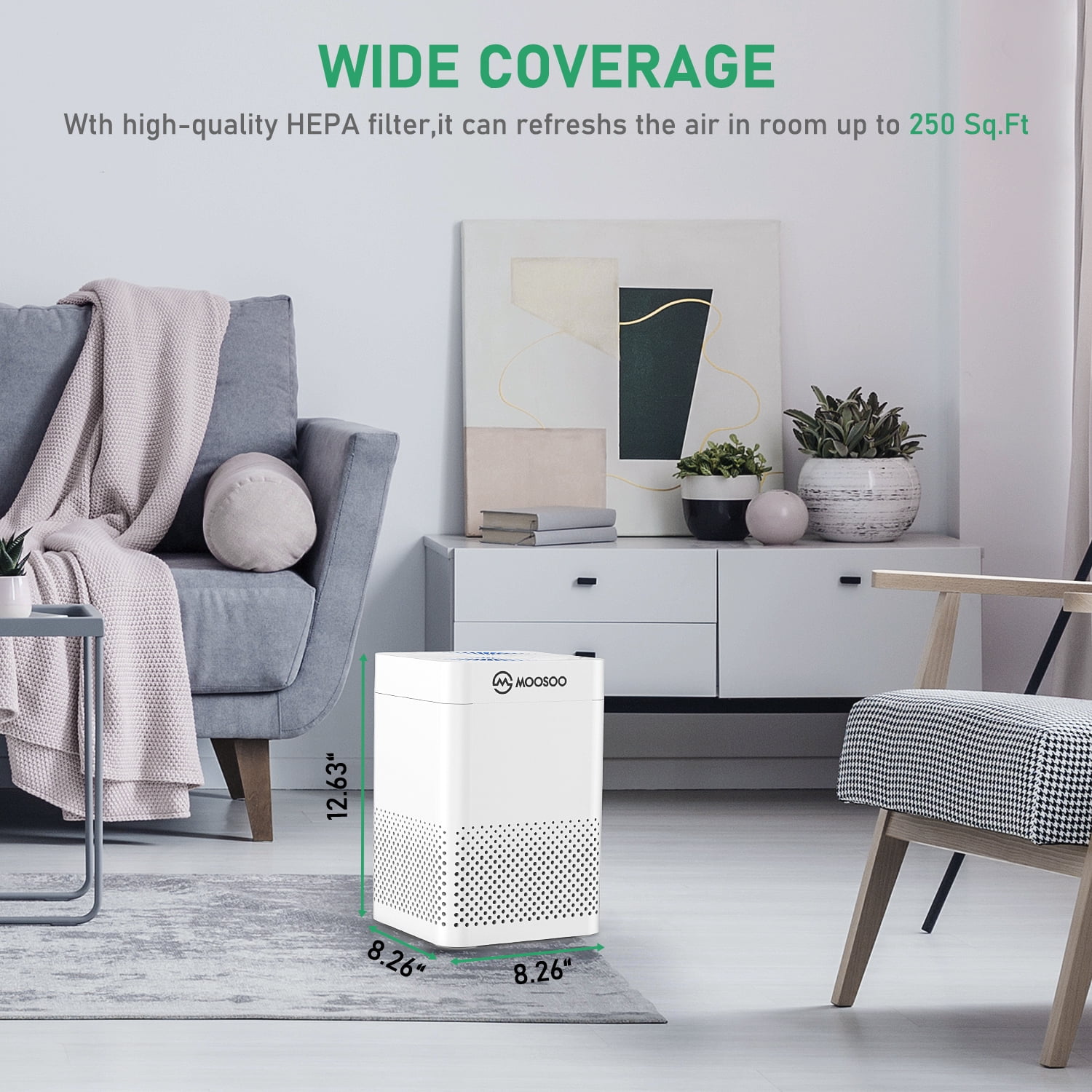 Moosoo Air Purifier with 3 Fan Speed, HEPA Filter, Quiet Air Purifier for 250 Sq Ft Room, White
