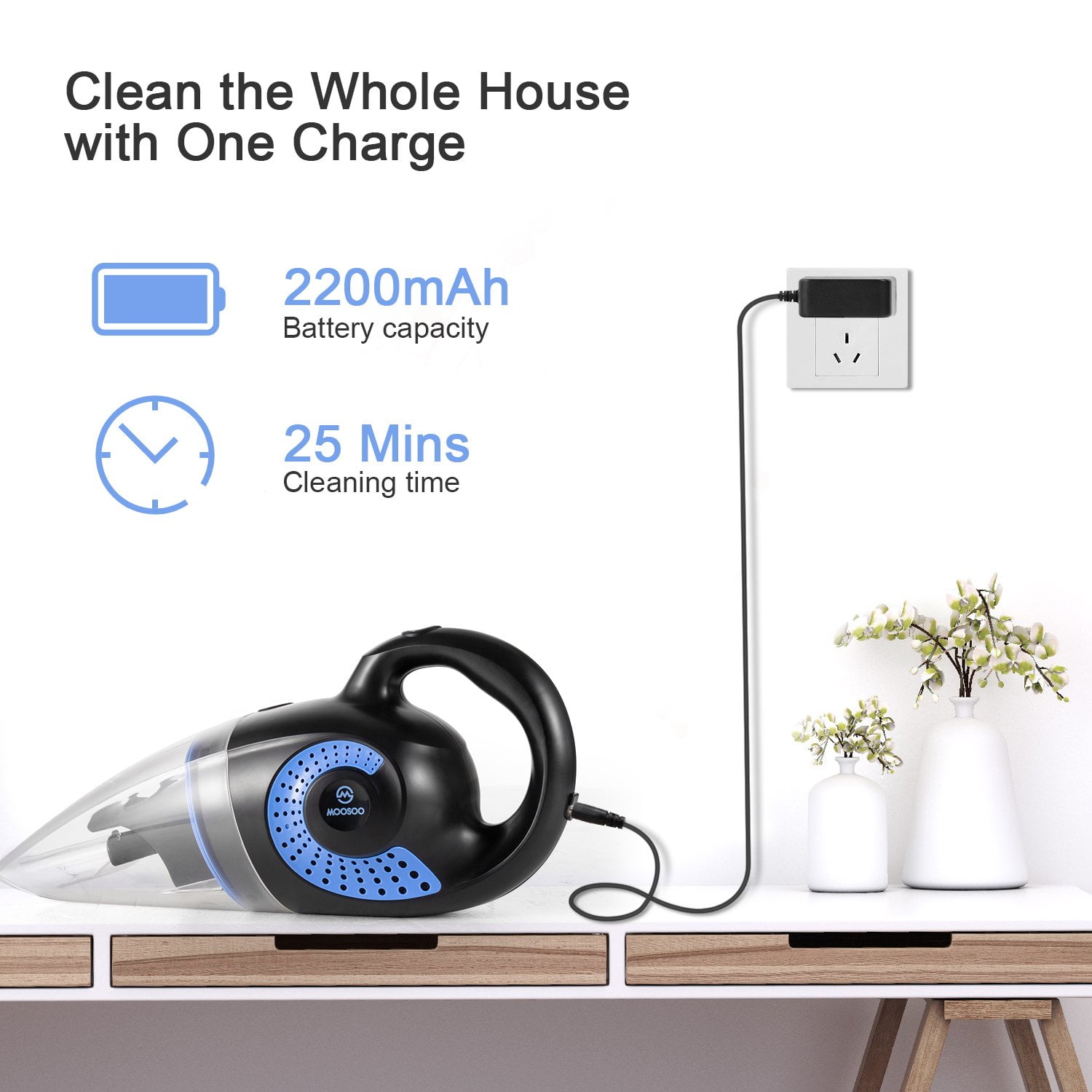 - 2200mAh rechargeable battery can offer hand vac long-lasting working time.
