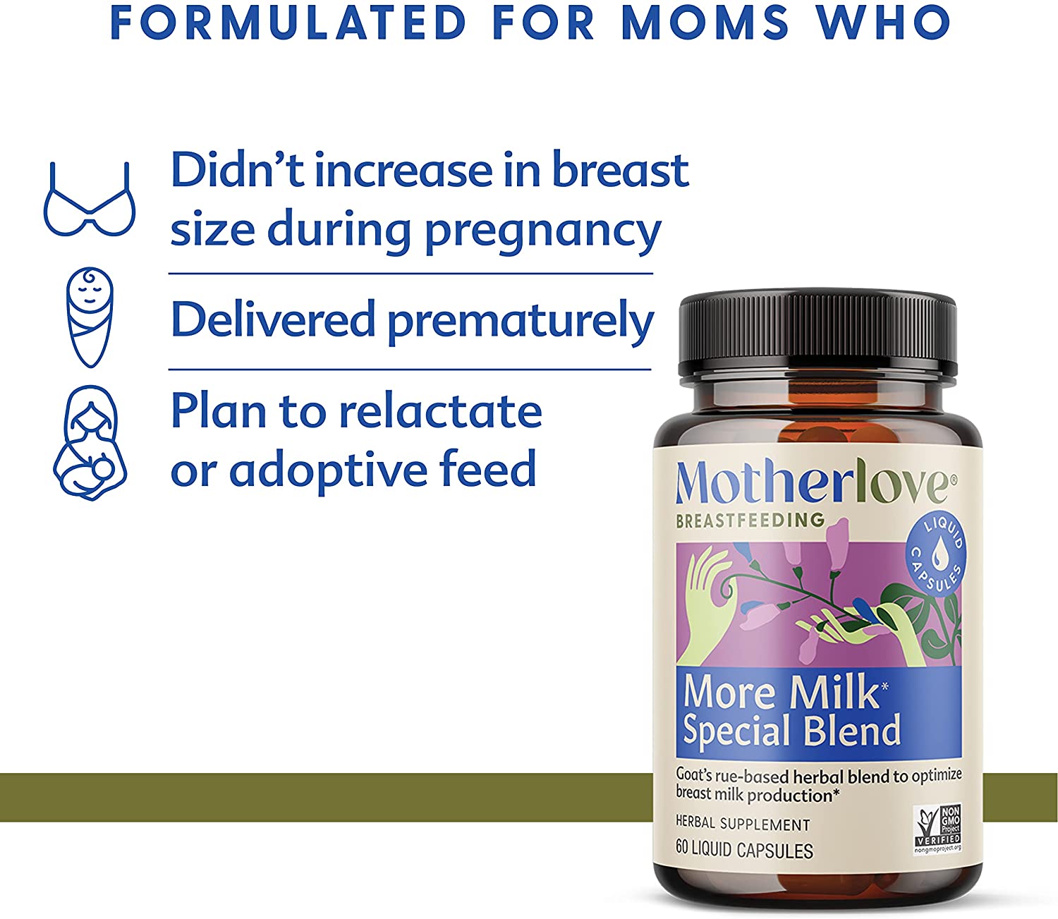 More Milk Special Blend is formulated for moms who didn’t increase in breast size during pregnancy, delivered prematurely, or plan to relactate or adoptive feed.