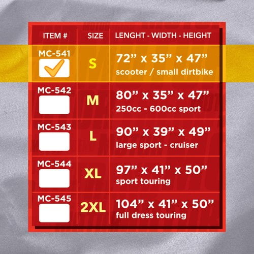 Keep your prize vehicle under cover from the elements with Motorcycle Cover Waterproof Outdoor Motorbike All-Weather Protection It has a unique one-layer bonded polypropylene material. The Motor Trend cover for motorcycles keeps out dust and moisture. It can be used on many leading motorbike brands including Kawasaki, KTM, Yamaha, Honda, Piaggio and Fiddle. The gray motorcycle cover comes with an extra storage bag. You can hit the road and have a lot of fun on your trip through the mountains or by the beach. Then, when you are finished, simply cover up the bike and wait for your next open-road experience. When you want a cover that takes care of your motorcycle and keeps it from rain and wind, reach for Motorcycle Cover Waterproof Outdoor Motorbike All-Weather Protection to keep it clean.