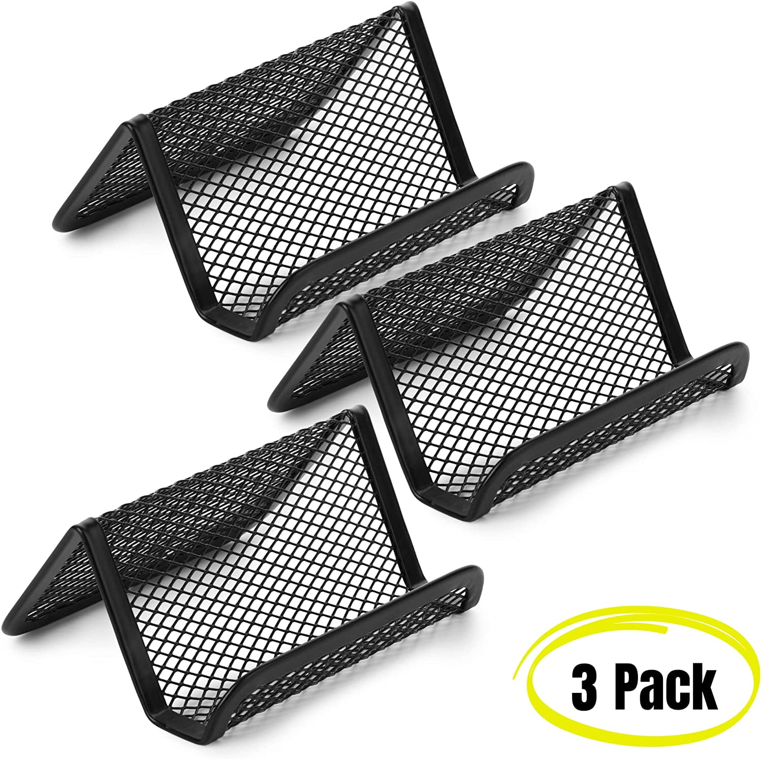- Package includes 3 black mesh business card holders.