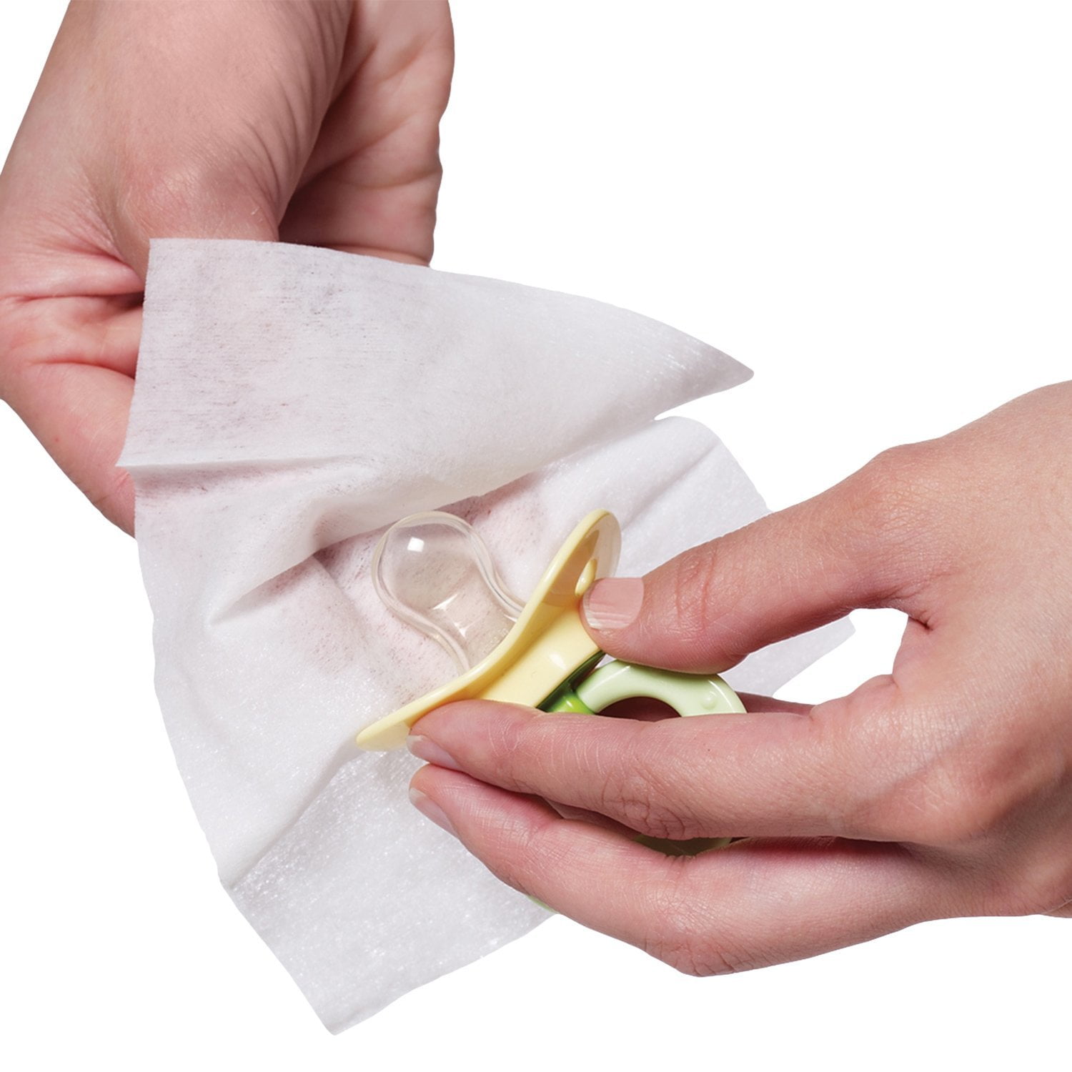 New-Munchkin 72 Pack Arm and Hammer Pacifier Wipes, WhiteHandy. For home use and on-the-go Made with 100% food-grade ingredients, these wipes clean pacifiers, bottles, nipples, cups, utensils and teething toys using the safe and natural power of baking soda. Wipes contain no alcohol or harsh chemicals These alcohol-free wipes measure 4" x 6"