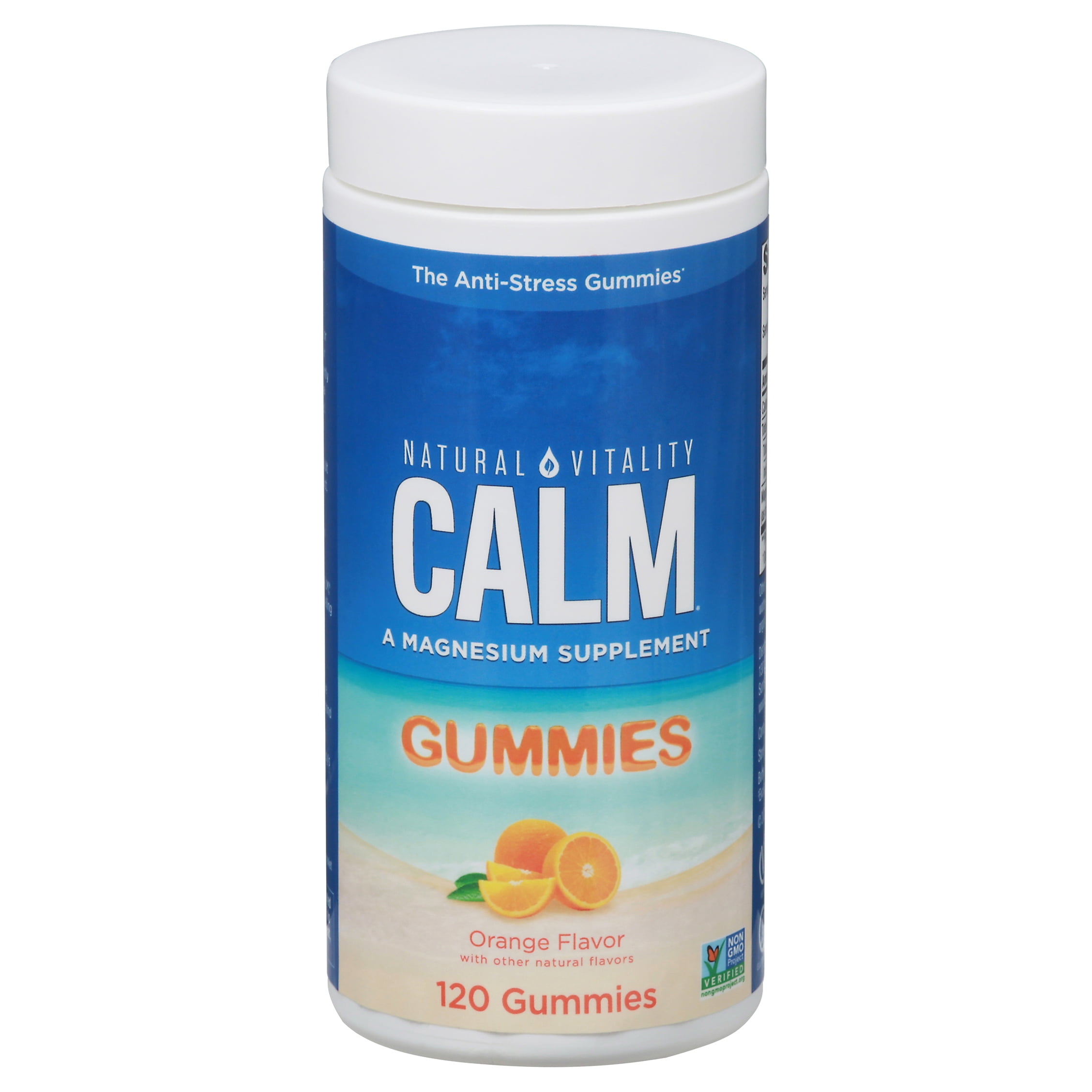 - A Magnesium Supplement. Orange flavor with other natural flavors. Contains no artificial flavor or synthetic color. Vegan. Gluten-free. Non GMO Project verified. nongmoproject.org. The anti-stress gummies. Multi-award-winning Natural Vitality Calm, developed by Peter Gillham, is the best-selling magnesium supplement in the natural products market (May 2020 volume sales data for natural products market as defined by SPINS). Why magnesium? We all encounter stress daily whether we realize it or not, and our bodies can respond by depleting our magnesium levels. We invite you to help replenish your body’s magnesium levels and enjoy the wave of calmfulness. www.naturalvitality.com. how2recycle.info. Bottle made with 100% recycled material. (Excluding colorant). (These statements have not been evaluated by the Food and Drug Administration. This product is not intended to diagnose, treat, cure, or prevent any disease.)