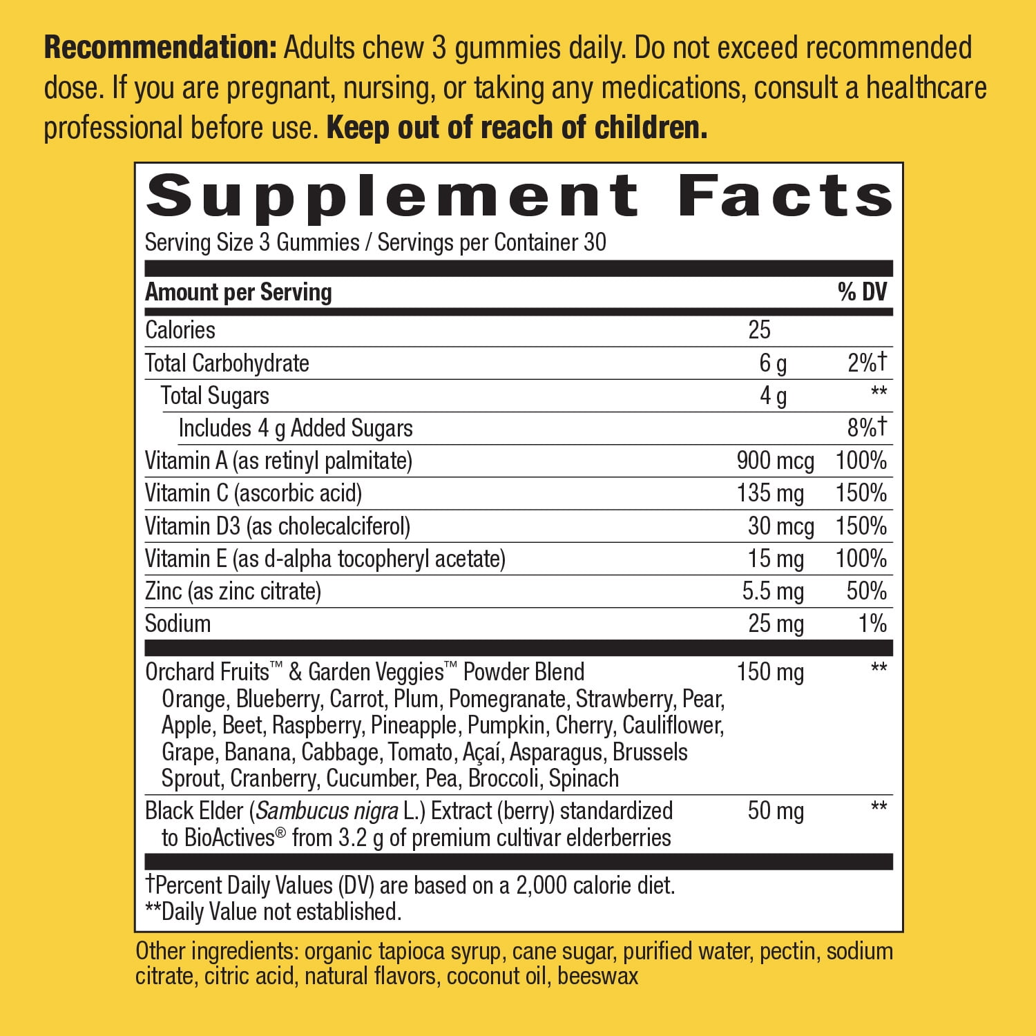 - Formulated with 100% DV or more of vitamins A, C, E, and D3 plus an excellent source of zinc to support immune health.*