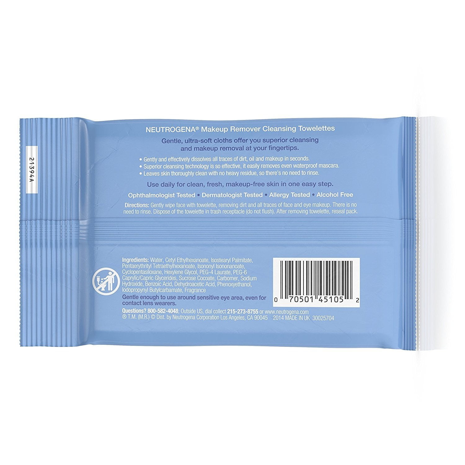 Remove makeup in one easy step with Neutrogena Makeup Remover Cleansing Towelettes Refill Pack. Formulated to be gentle and safe around the sensitive eye area and for contact lens wearers, these soft and gentle pre-moistened towelettes effectively dissolve all traces of dirt, oil and makeup–even waterproof mascara–for clean, fresh skin every day. The towelettes help leave skin thoroughly clean and without heavy residue, so there’s no need to rinse. This refill pack comes with a total of 7 cleansing sheets.