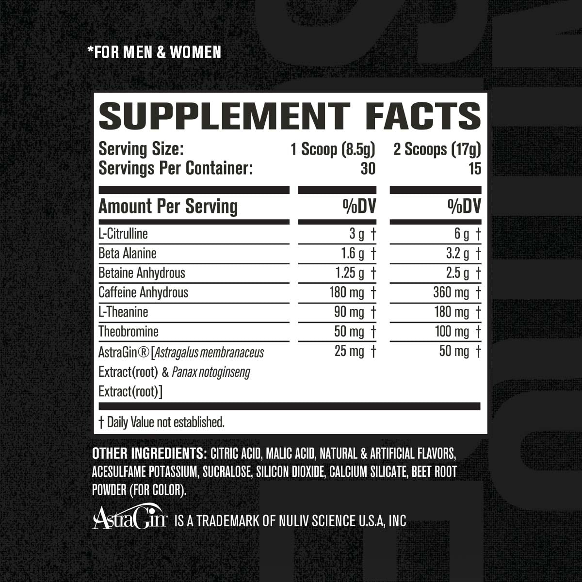 - Pre-Workout Drink for Physique Improvements: This powerhouse preworkout energy powder promotes an enhanced body composition over time. The formula contains the most cutting-edge, potent ingredients available: L-Citrulline, Betaine Anhydrous, Beta Alanine, Caffeine, L Theanine, and it’s creatine-free.